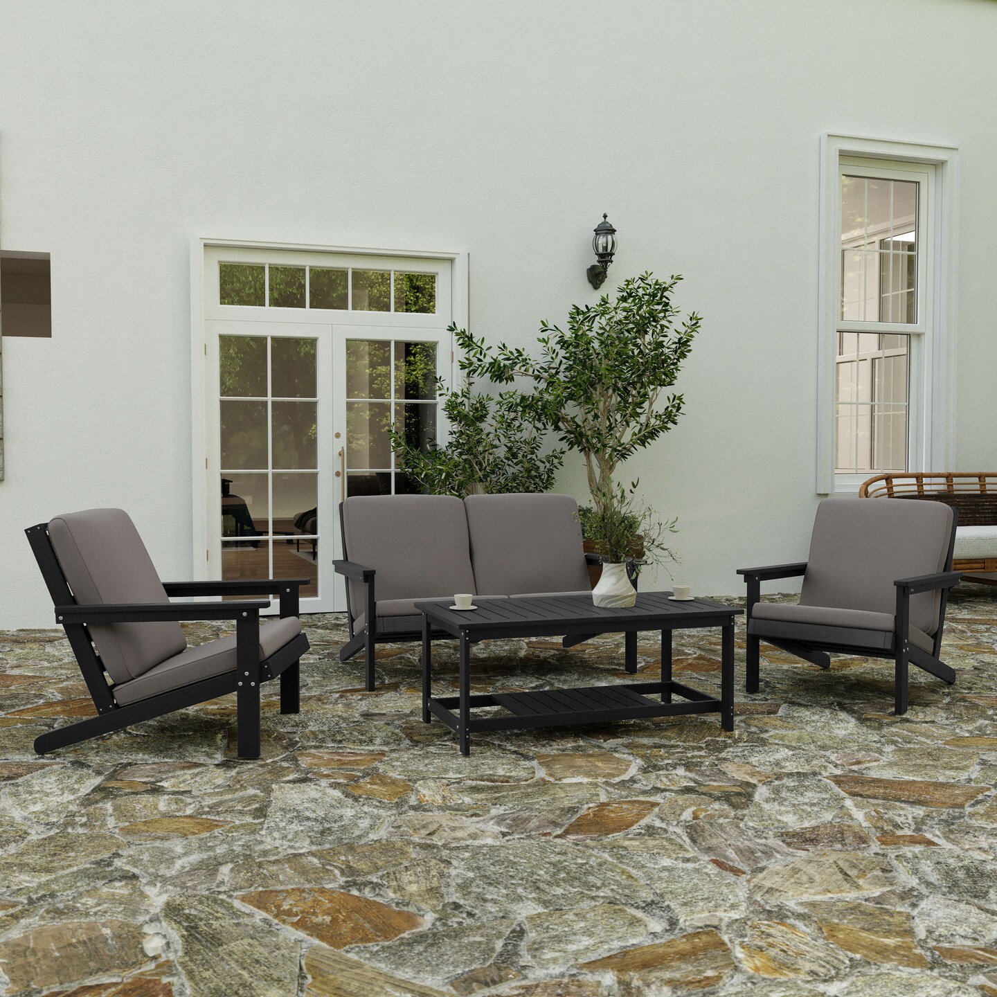 Merrick Lane Riviera All-Weather Poly Resin Wood Two Tiered Adirondack Slatted Coffee Conversation Table