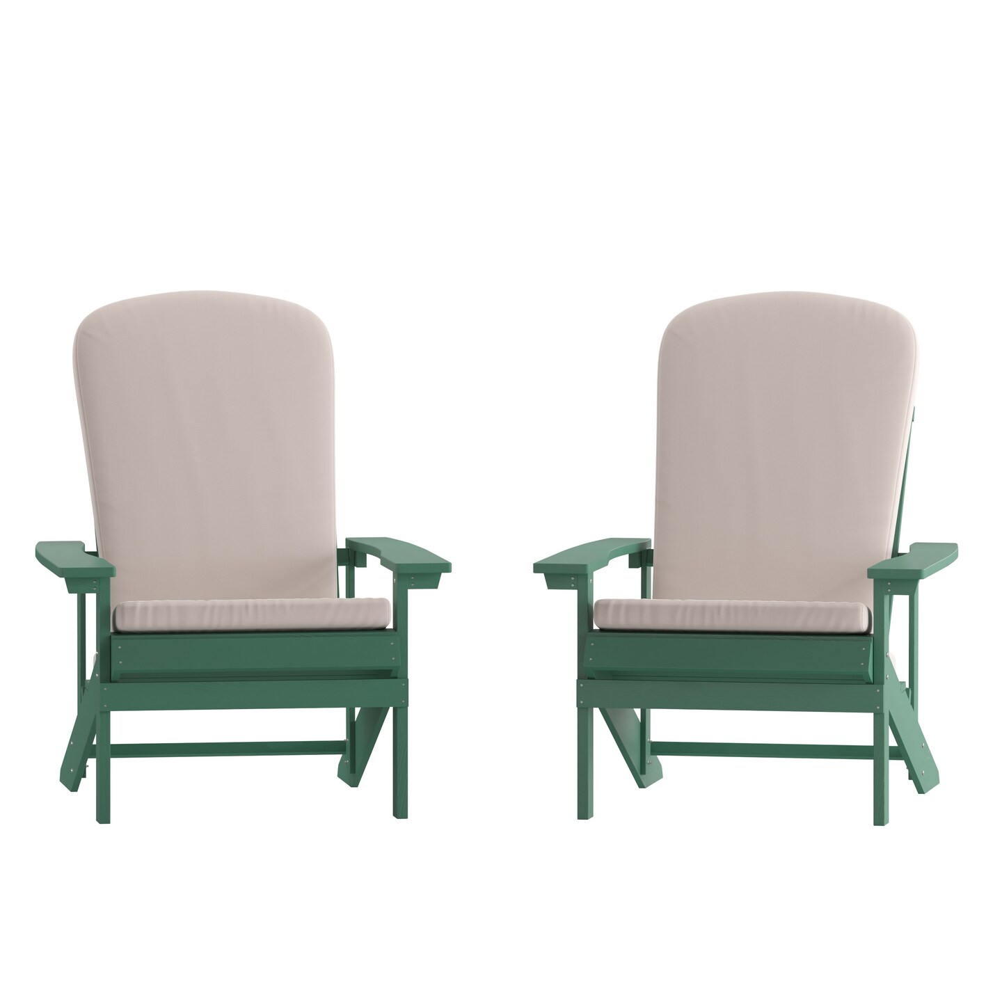 Merrick Lane Riviera Set of 2 Weather Resistant Adirondack Patio Chairs With Vertical Lattice Backs and Comfort Foam Cushions