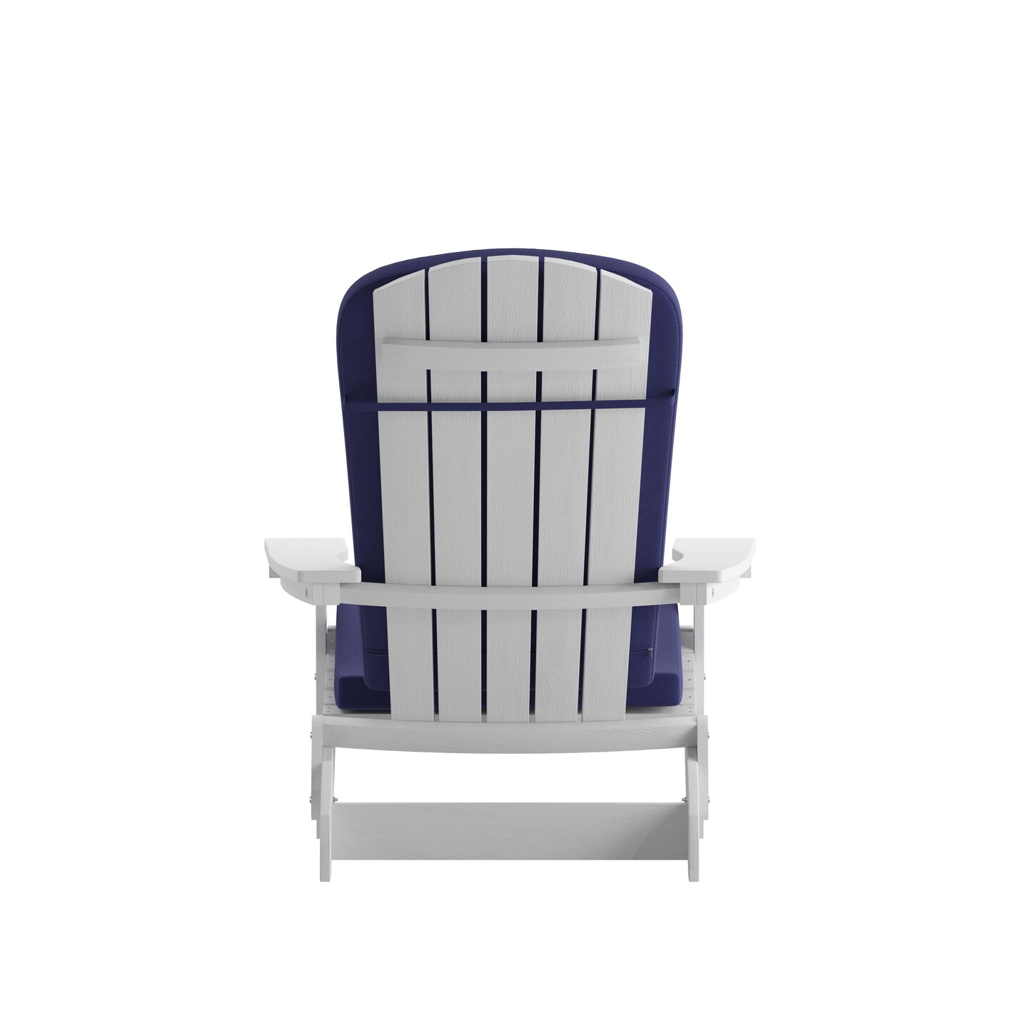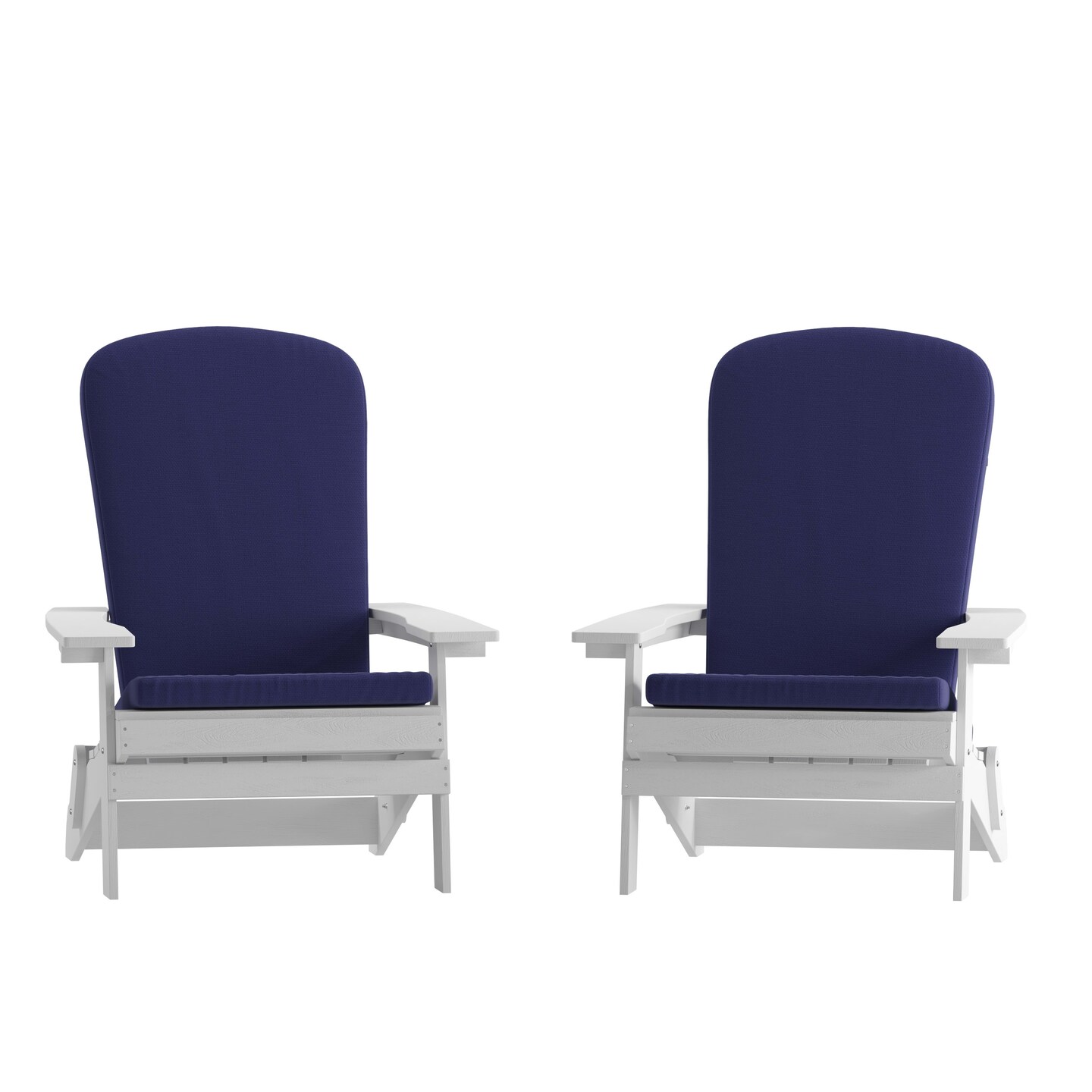 Merrick Lane Riviera Set of 2 Weather Resistant Folding Adirondack Patio Chairs With Vertical Lattice Backs and Comfort Foam Cushions