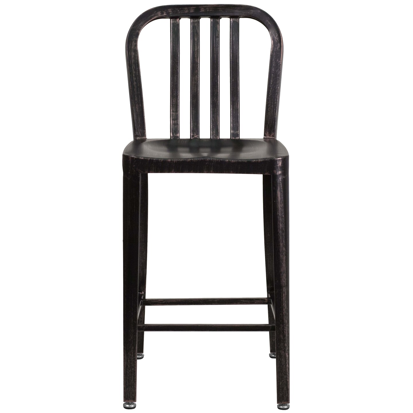 Merrick Lane Santorini Galvanized Steel Indoor/Outdoor Counter Bar Stool With Slatted Back And Powder Coated Finish