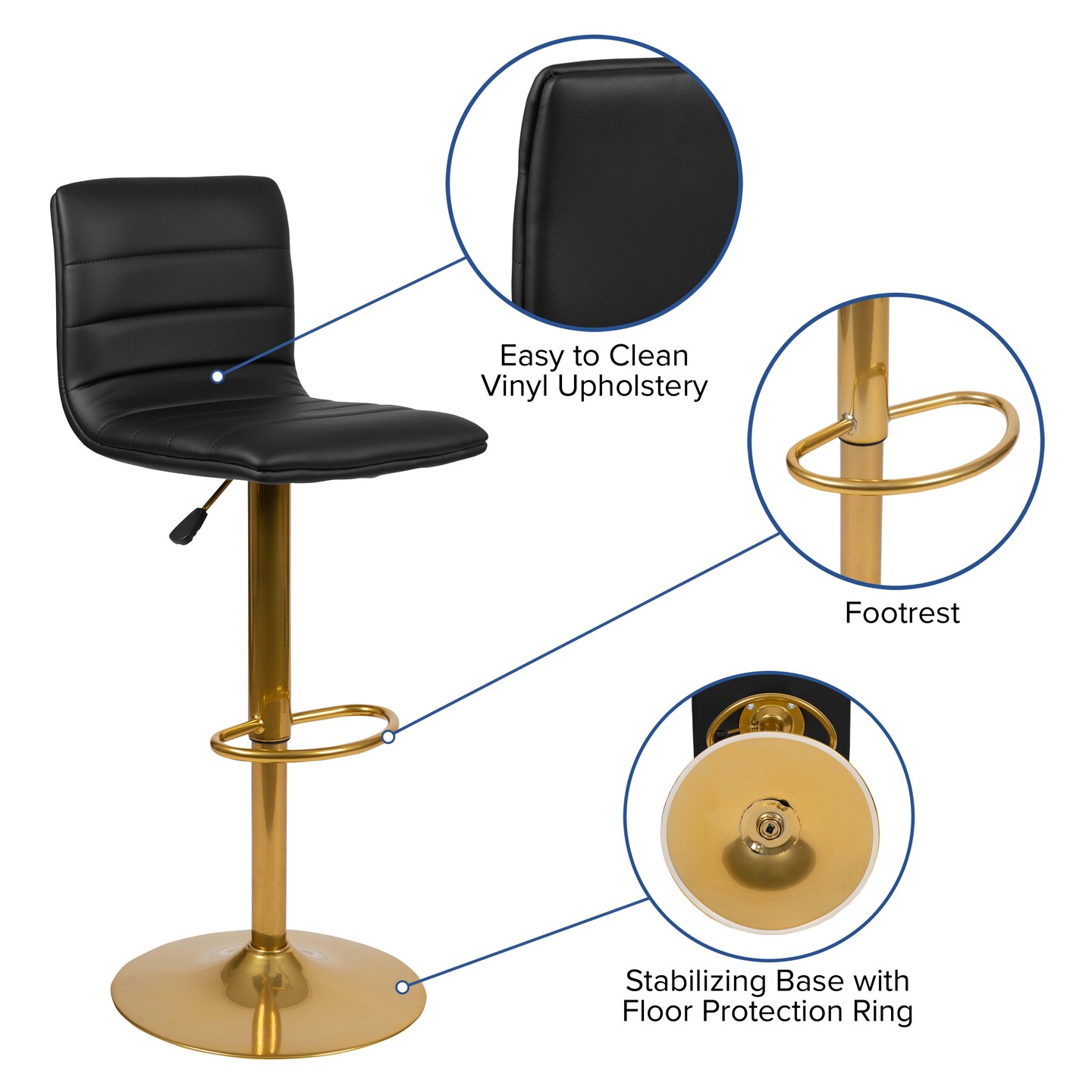 Merrick Lane Set of 2 Contemporary Height Adjustable Swivel Stools with Back and Pedestal Base with Footrest