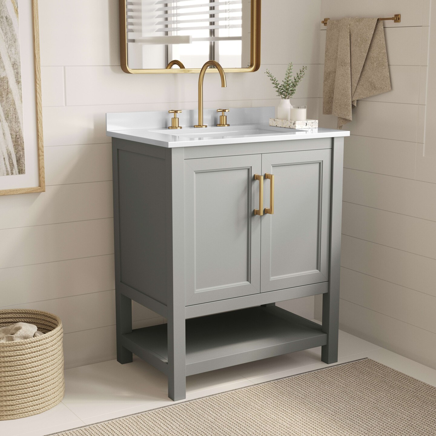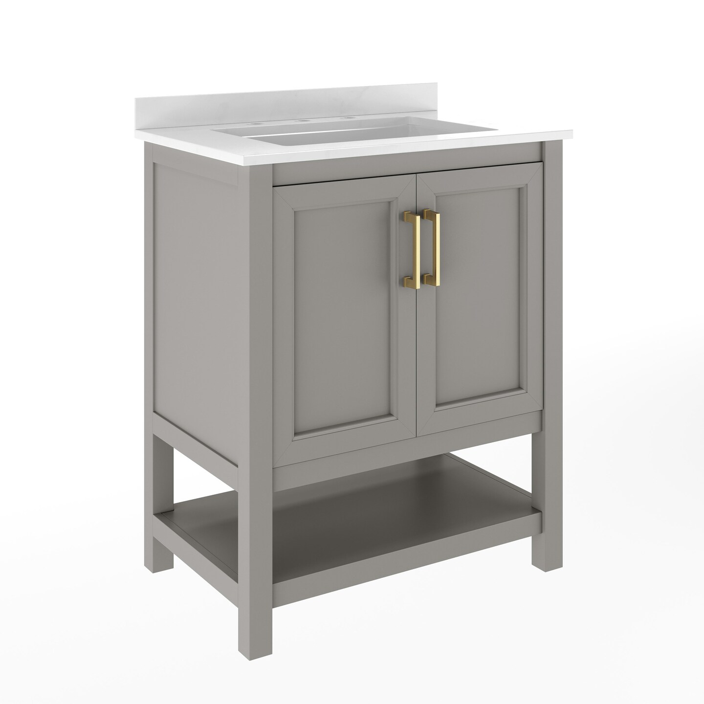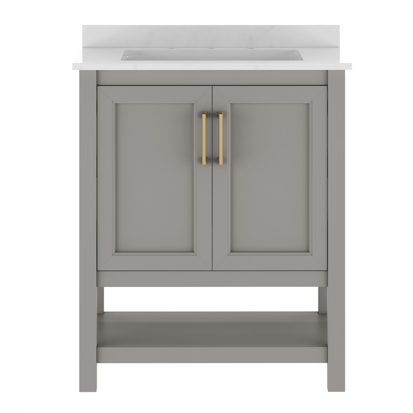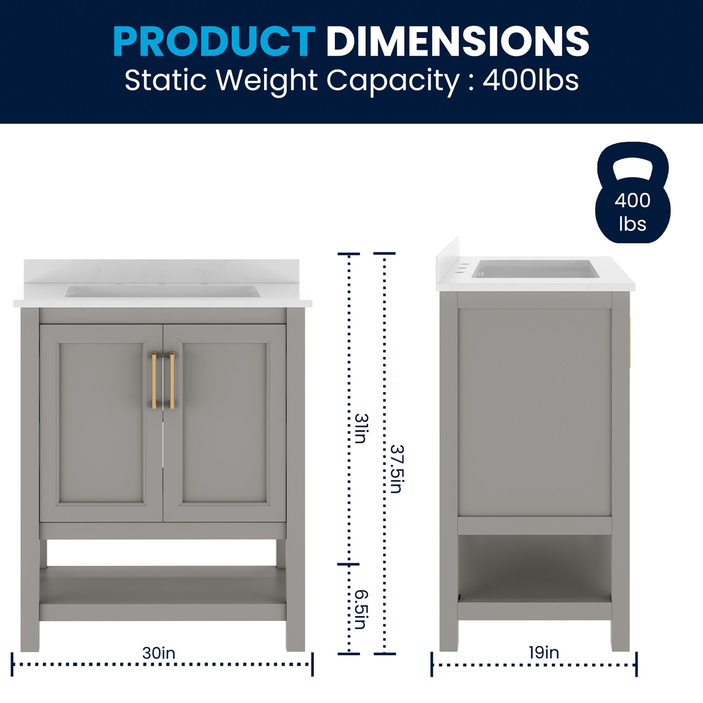 Merrick Lane Vigo Bathroom Vanity with Ceramic Sink, Carrara Marble Finish Countertop, Storage Cabinet with Soft Close Doors and Open Shelf