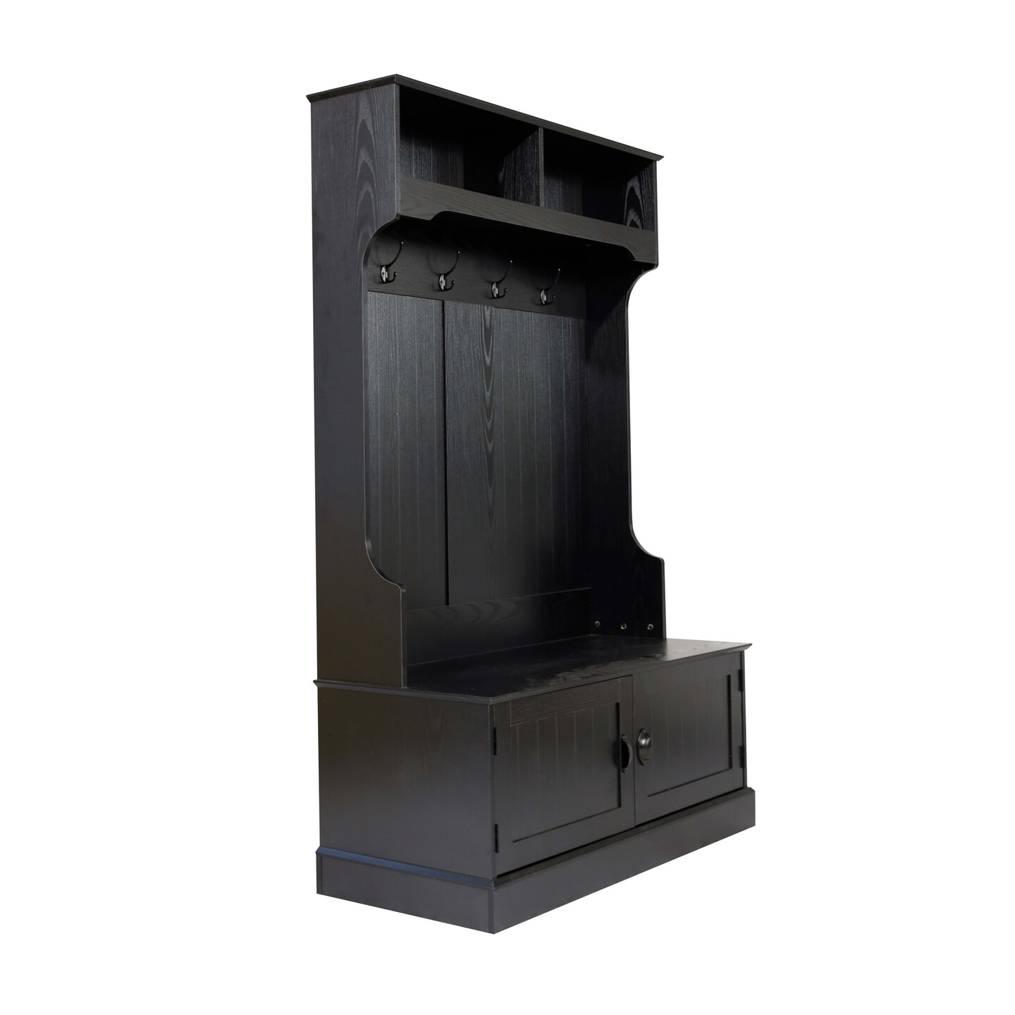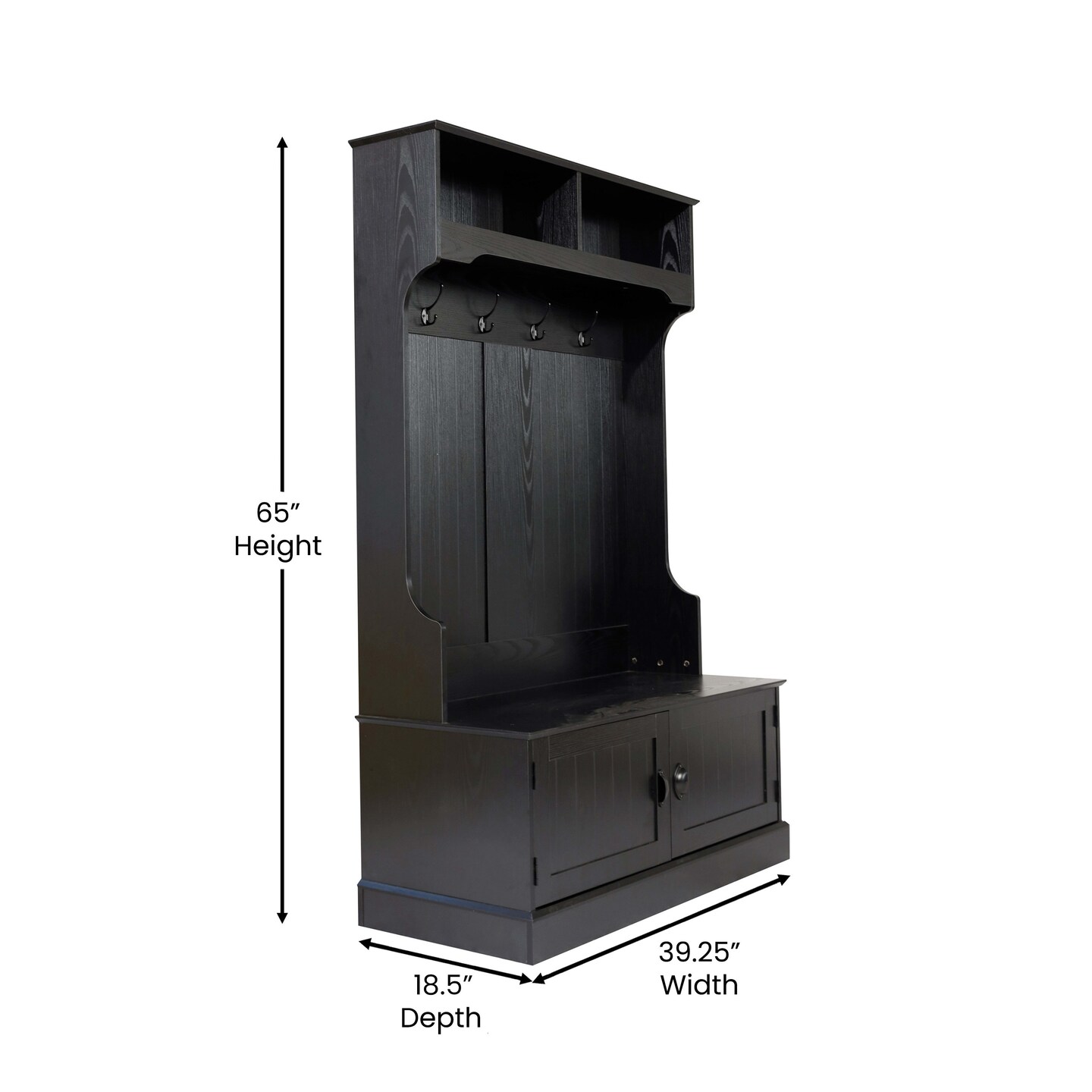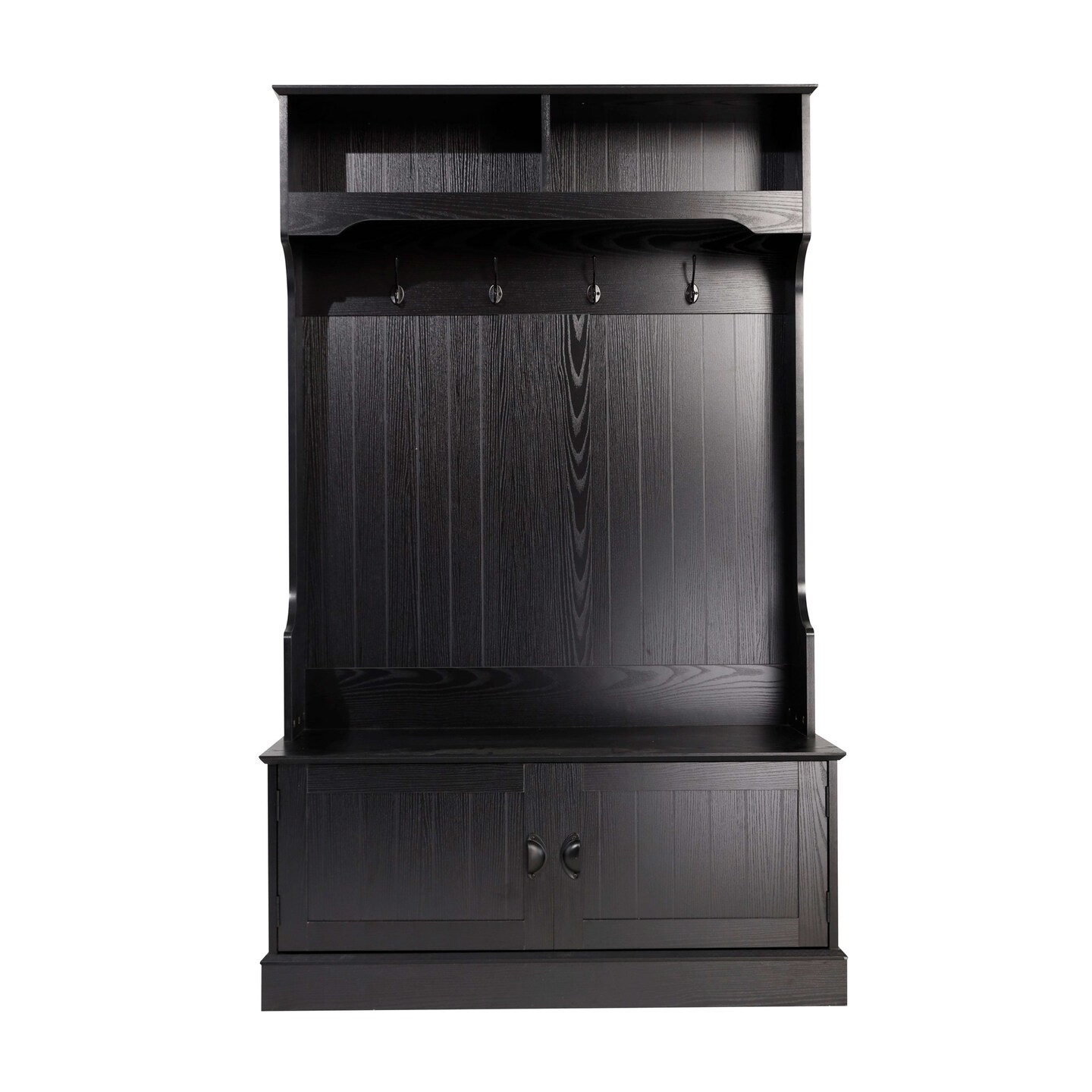 Merrick Lane Wallen Hallway Tree with Bench Seating, 4 Double Coat Hooks, Upper Storage and Double Door Under Bench Storage