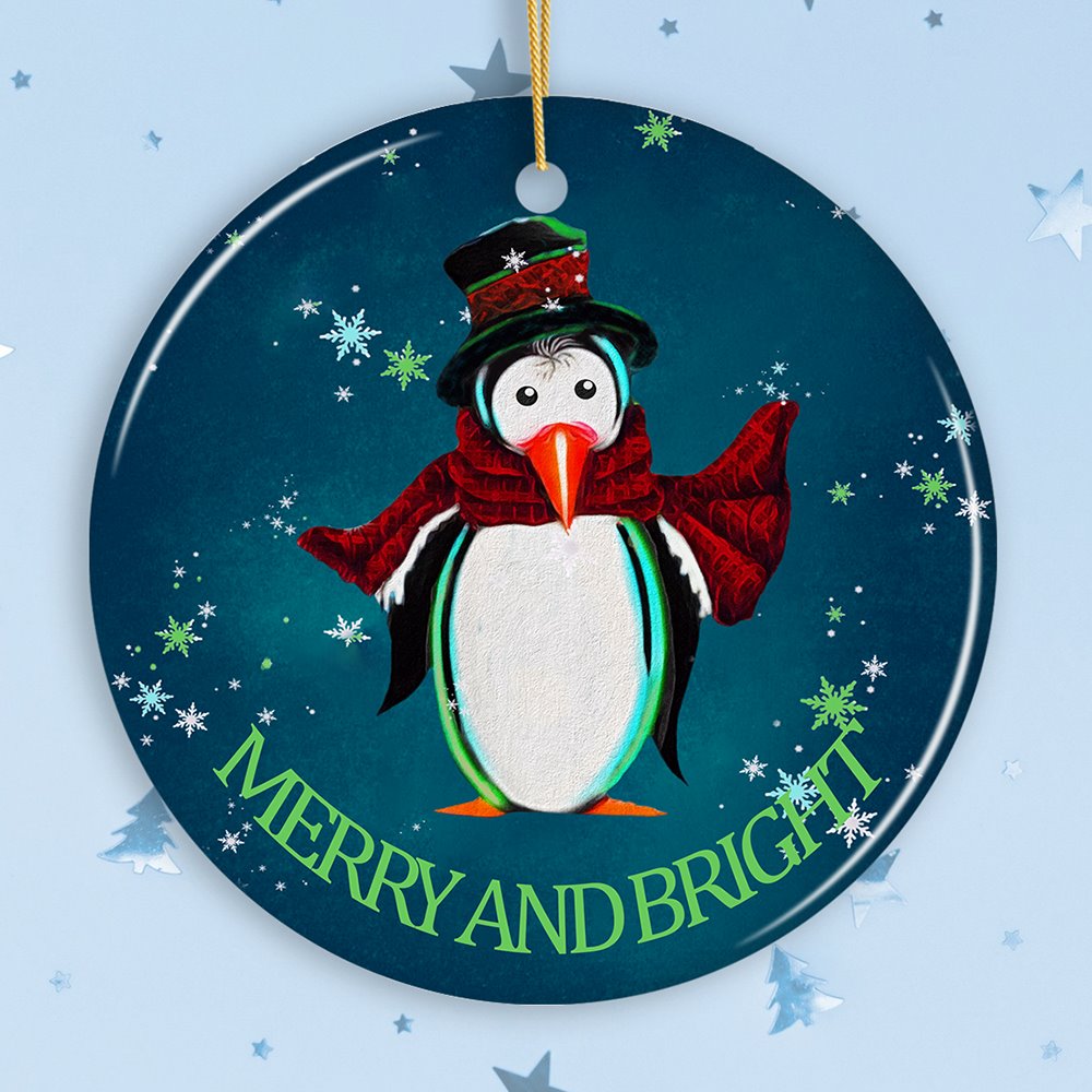 Merry and Bright Penguin Christmas Ornament