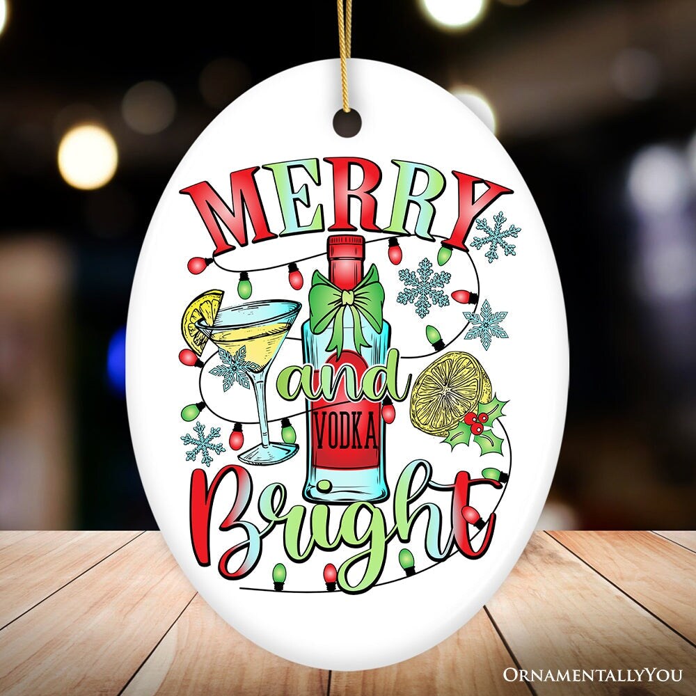 Merry and Bright Vodka Ornament, Gift and Decor for Vibrant Christmas Cocktail Celebration