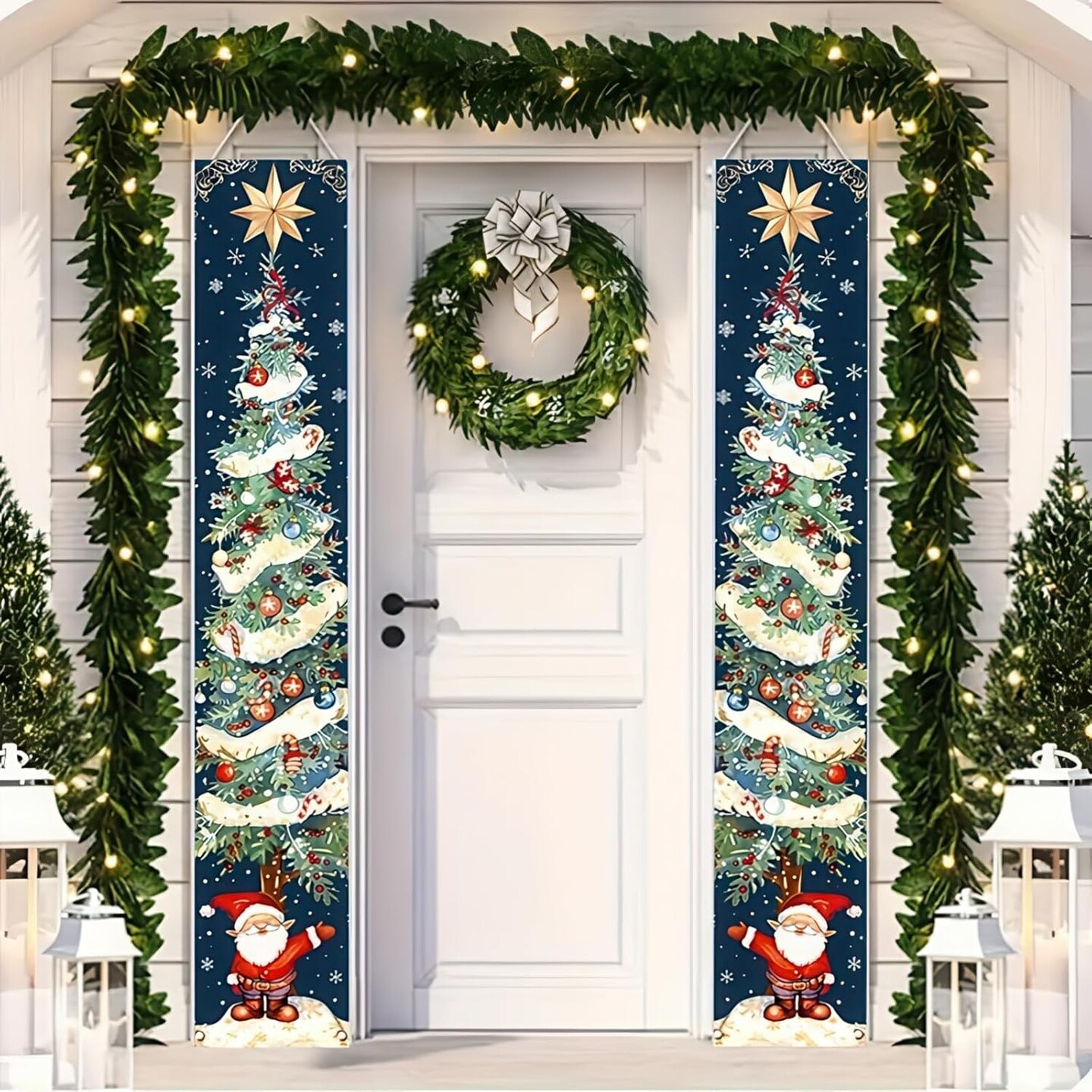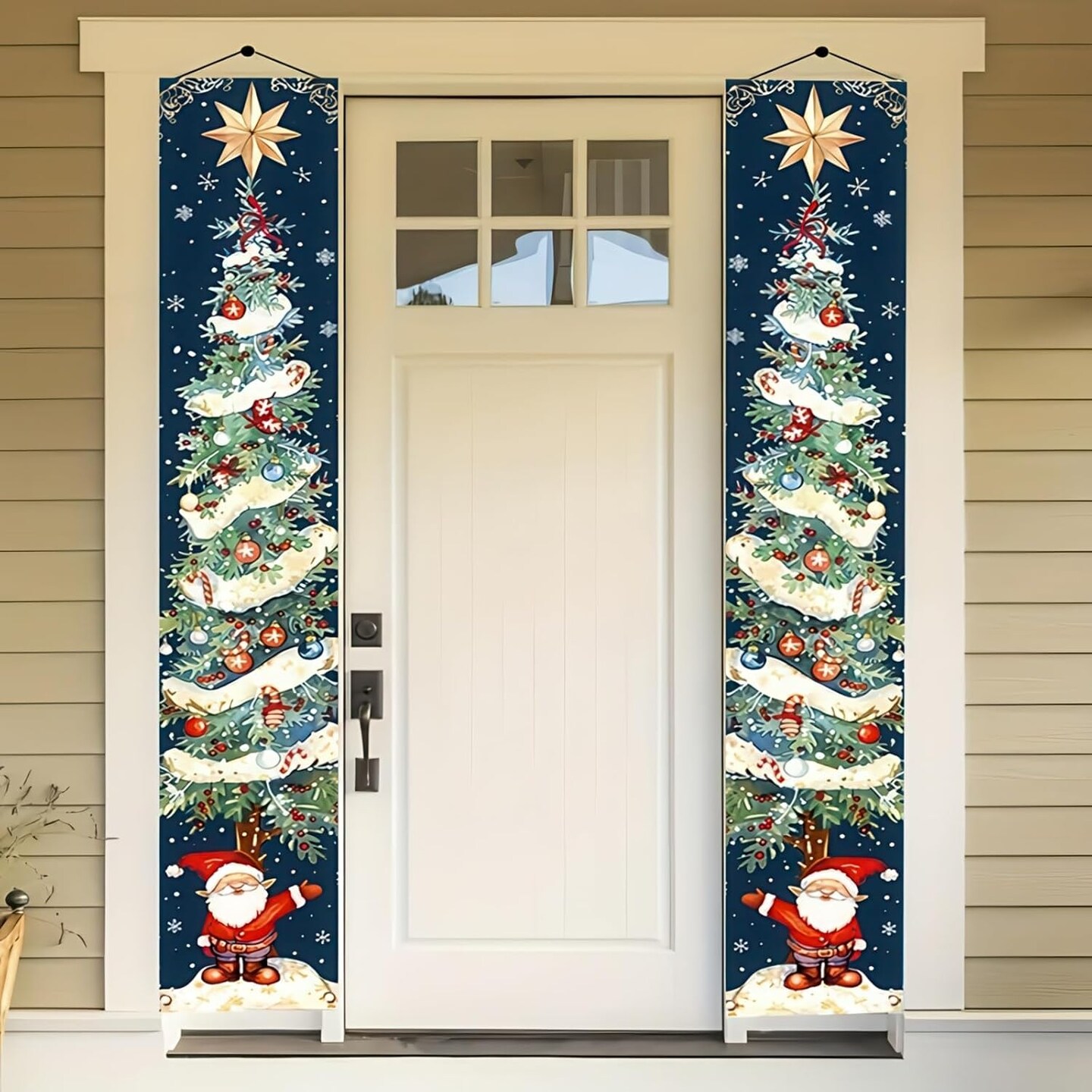 Merry Christmas Banner Hanging Porch Sign - Christmas Tree and Santa (71 x 12 Inch)