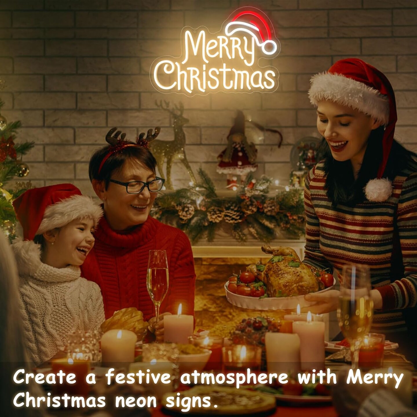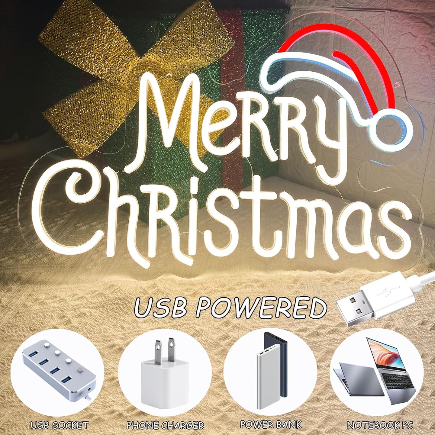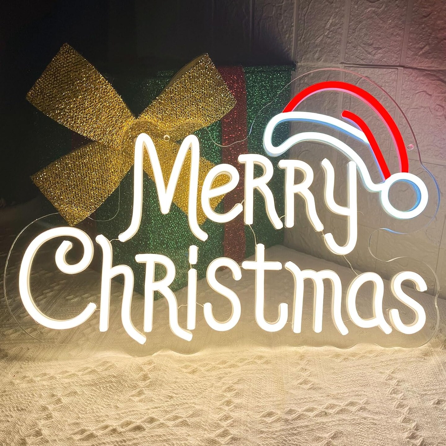 Merry Christmas Neon Signs, Warm White Merry Christmas Neon Light for Christmas Decoration, LED Neon Christmas Lights Sign for Christmas, Bedroom, Home Living Room, Christmas Party, New Year (Merry Christmas)