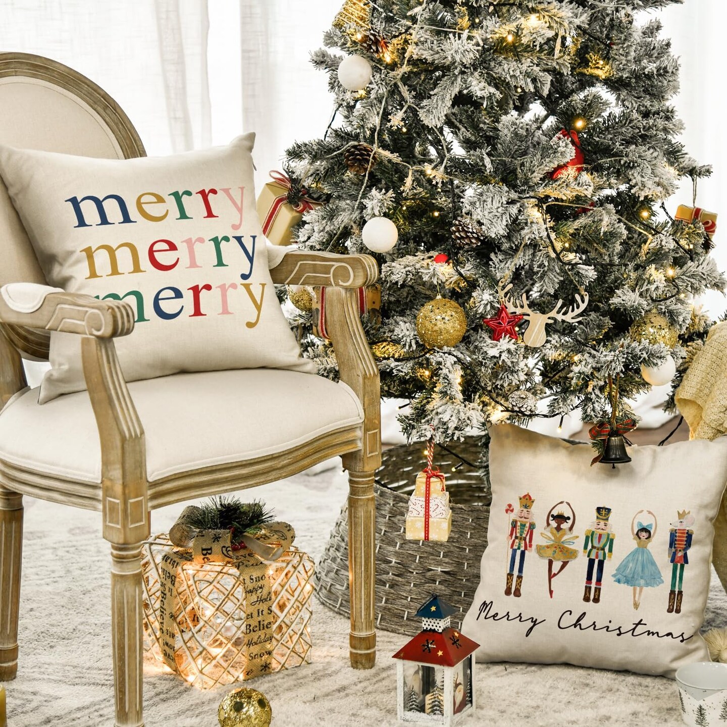 Merry Christmas Nutcracker Throw Pillow Covers, 18x18 Inch – Set of 4 Winter Holiday Cushion Cases for Sofa, Couch, Party Décor