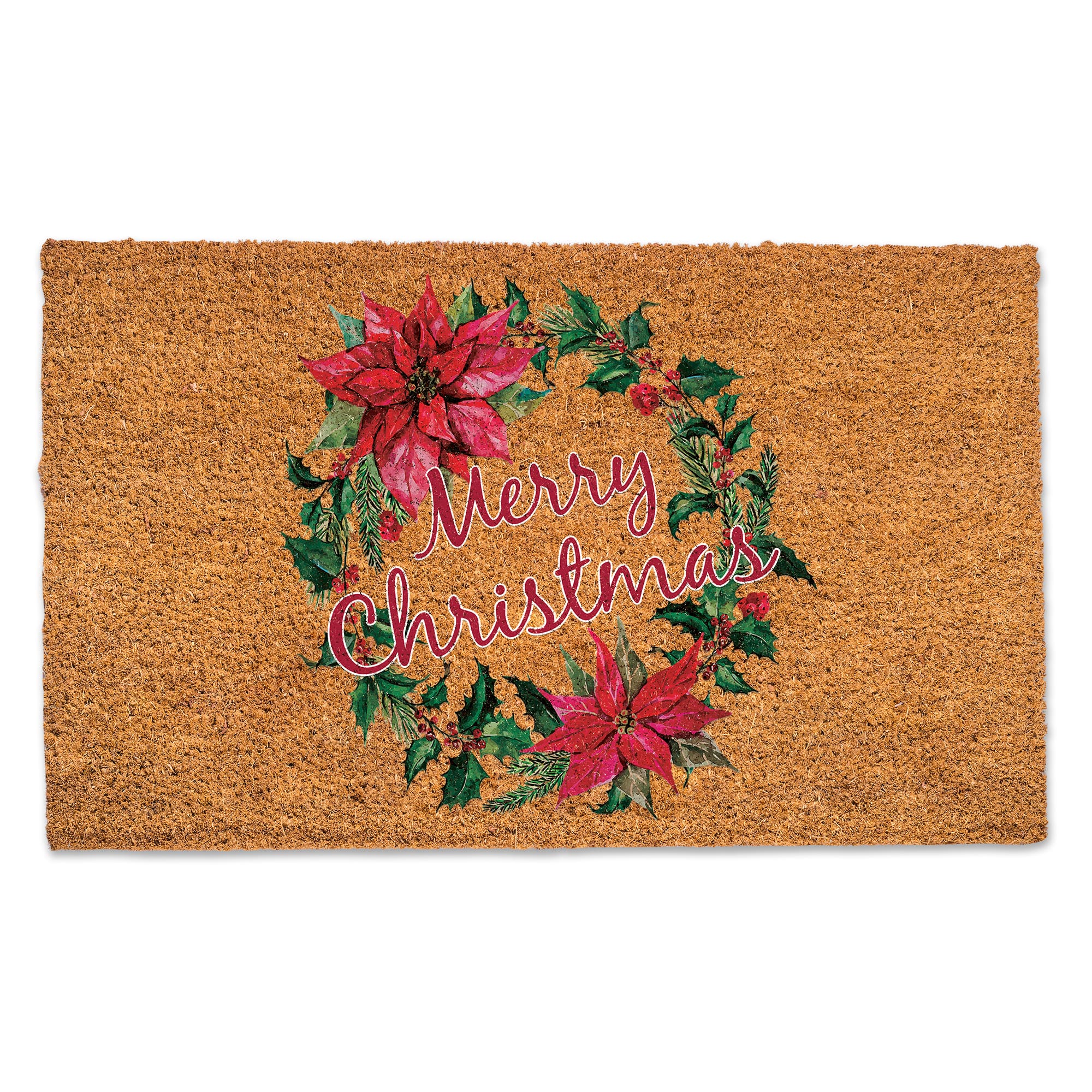 Merry Christmas Poinsettia Wreath 30" x 18" Door Mat