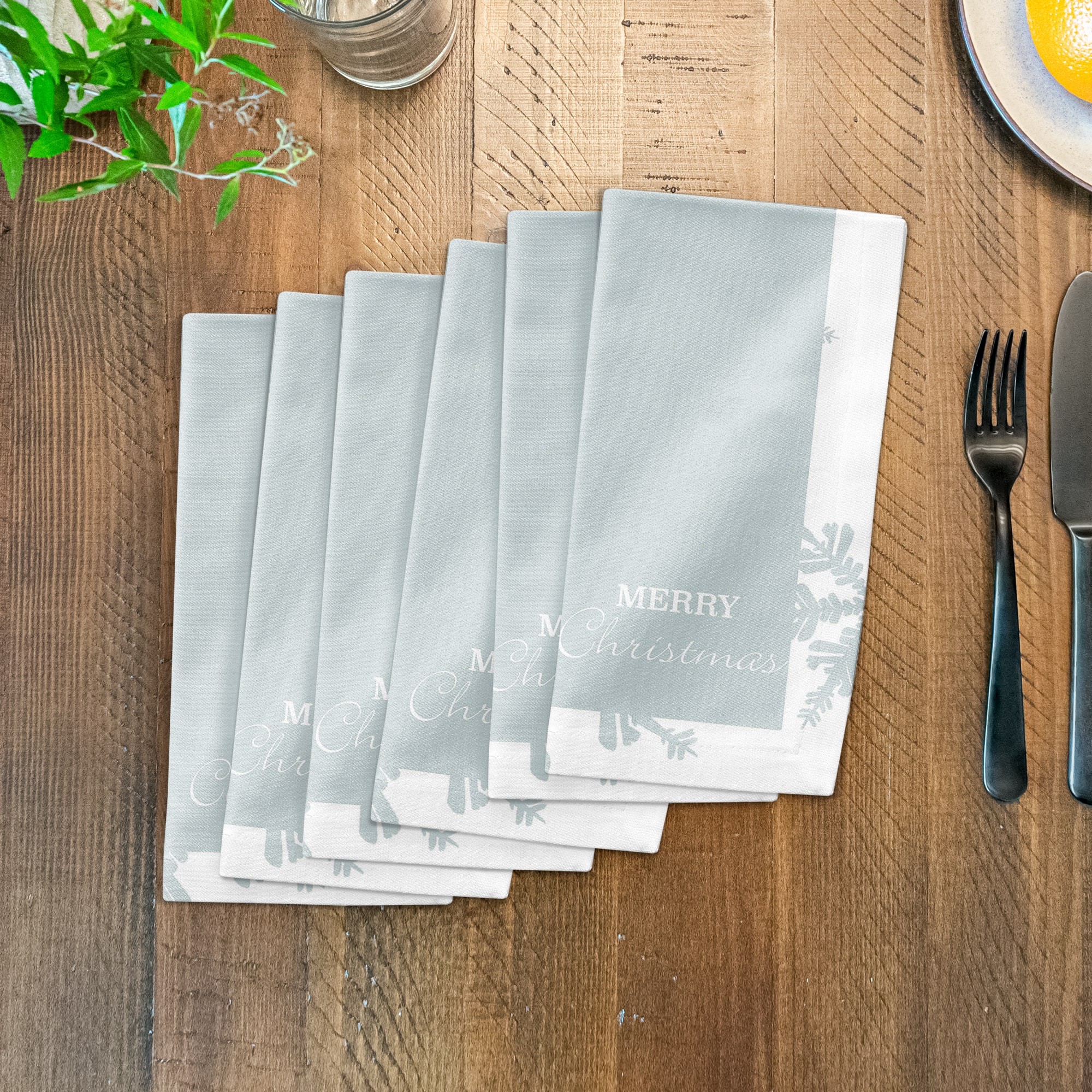 Merry Christmas Snowflake Pattern 10" x 10" Cotton Twill Napkin