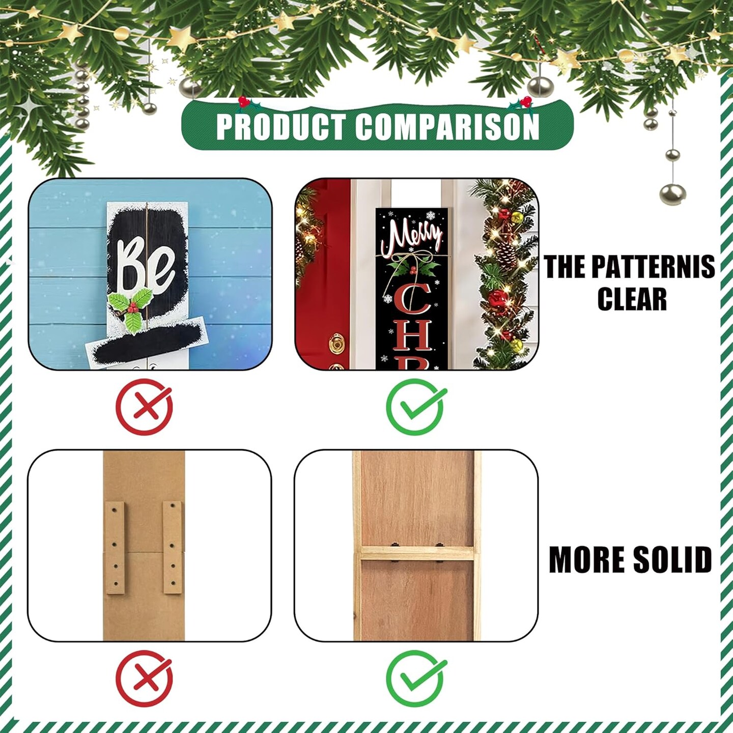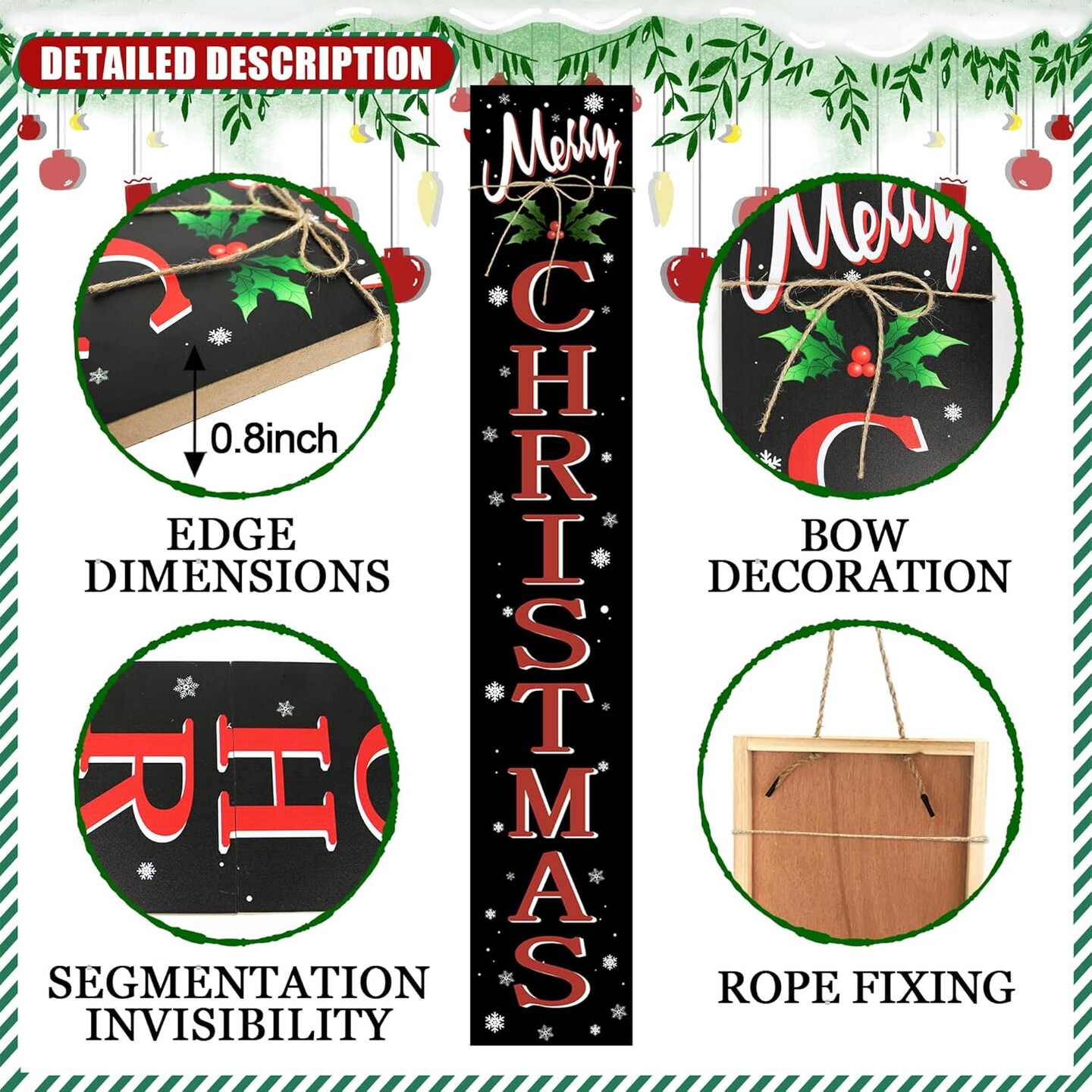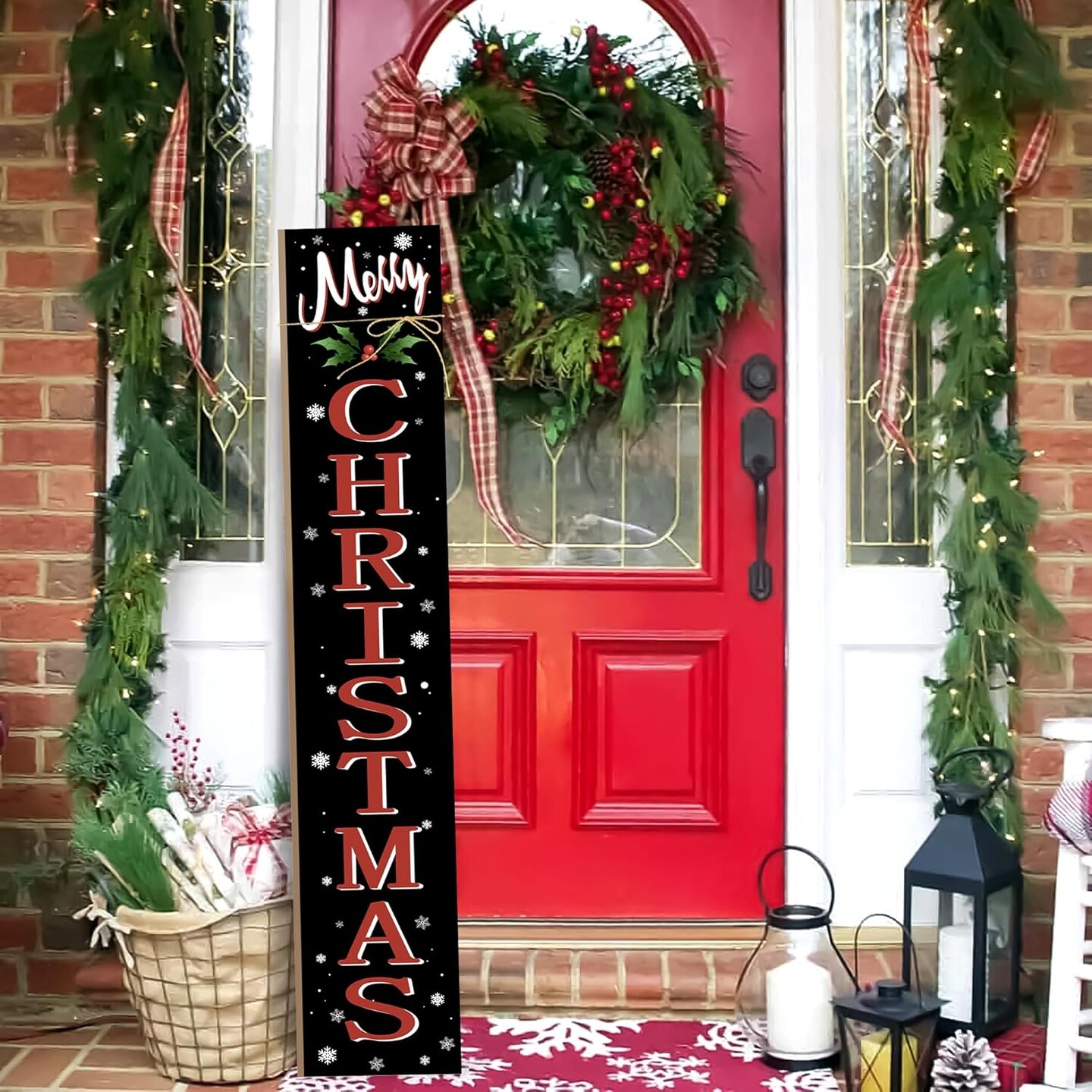 Merry Christmas Welcome Porch Sign Xmas Wooden Door Sign 47'' Large Porch Sign(47.2"L x 47.2"W)