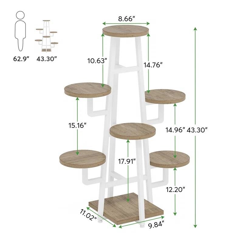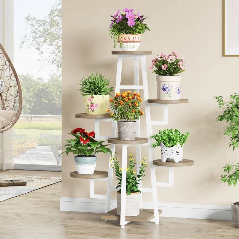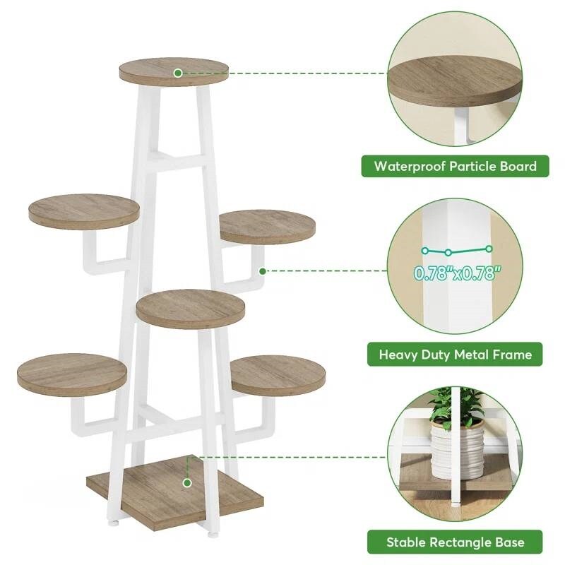 Metal and Wood 7-Tier Indoor Plant Stand with Scratch-Resistant Shelves