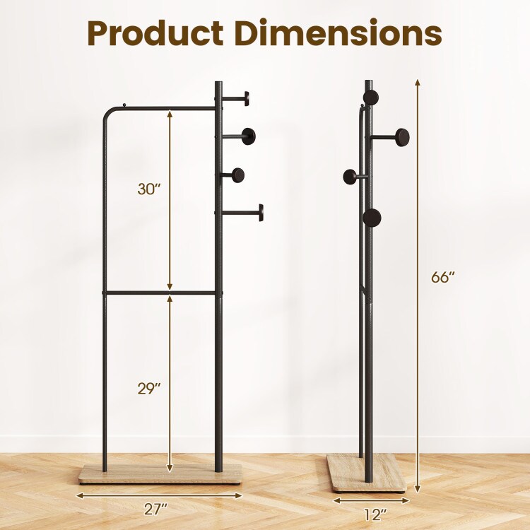 Metal Clothes Rack Freestanding 2 Rods Wooden Shelf and Hooks Natural/Black