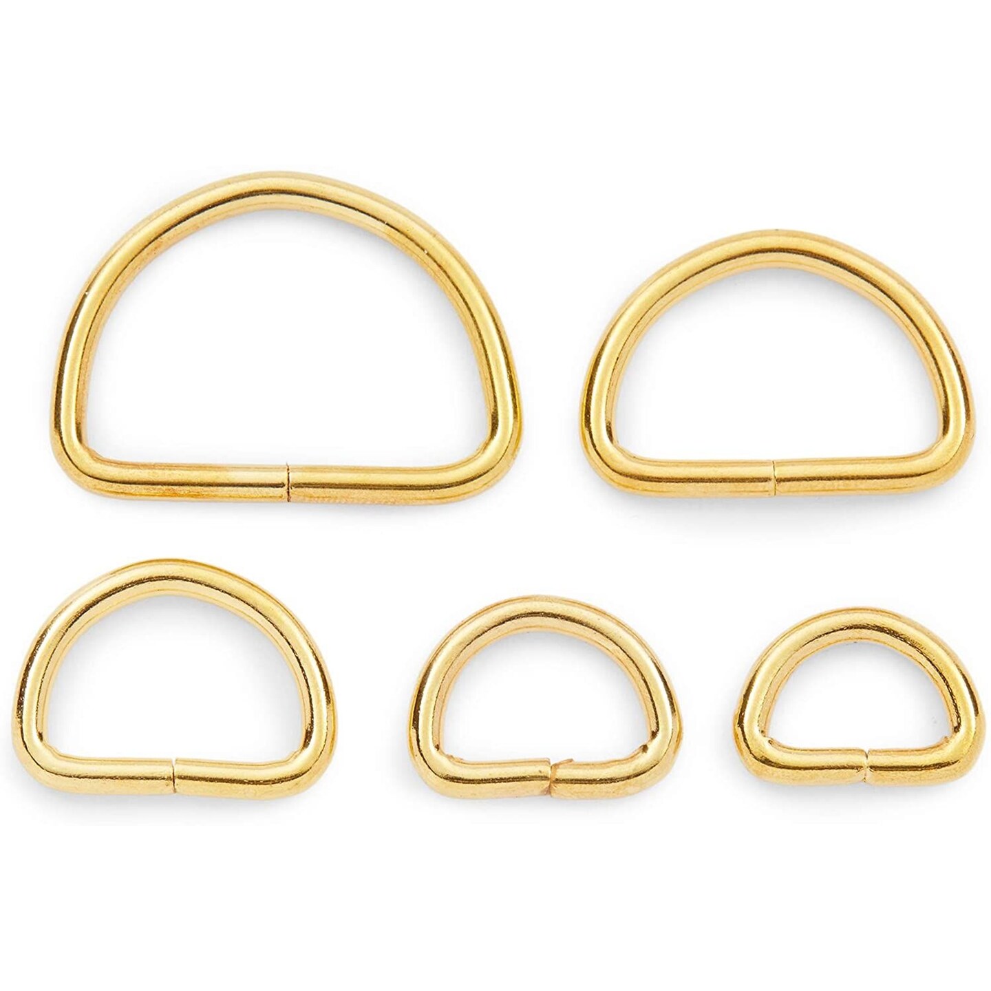 Metal D Ring Set, Multi-Purpose for Sewing, DIY Crafts (Gold, 5 Sizes, 150 Pieces)