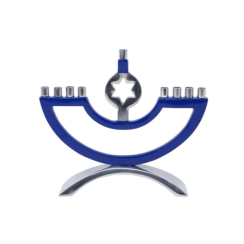 Metal & Enamel Candle Menorah with Star of David By Kinor Decor