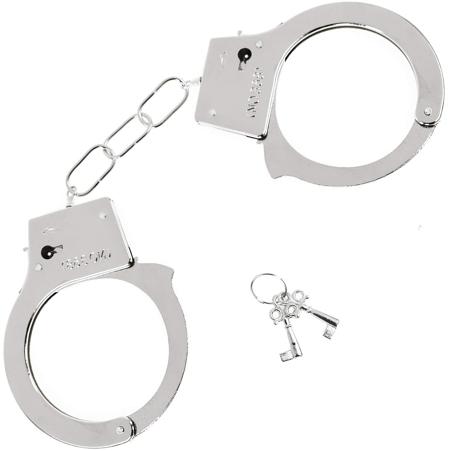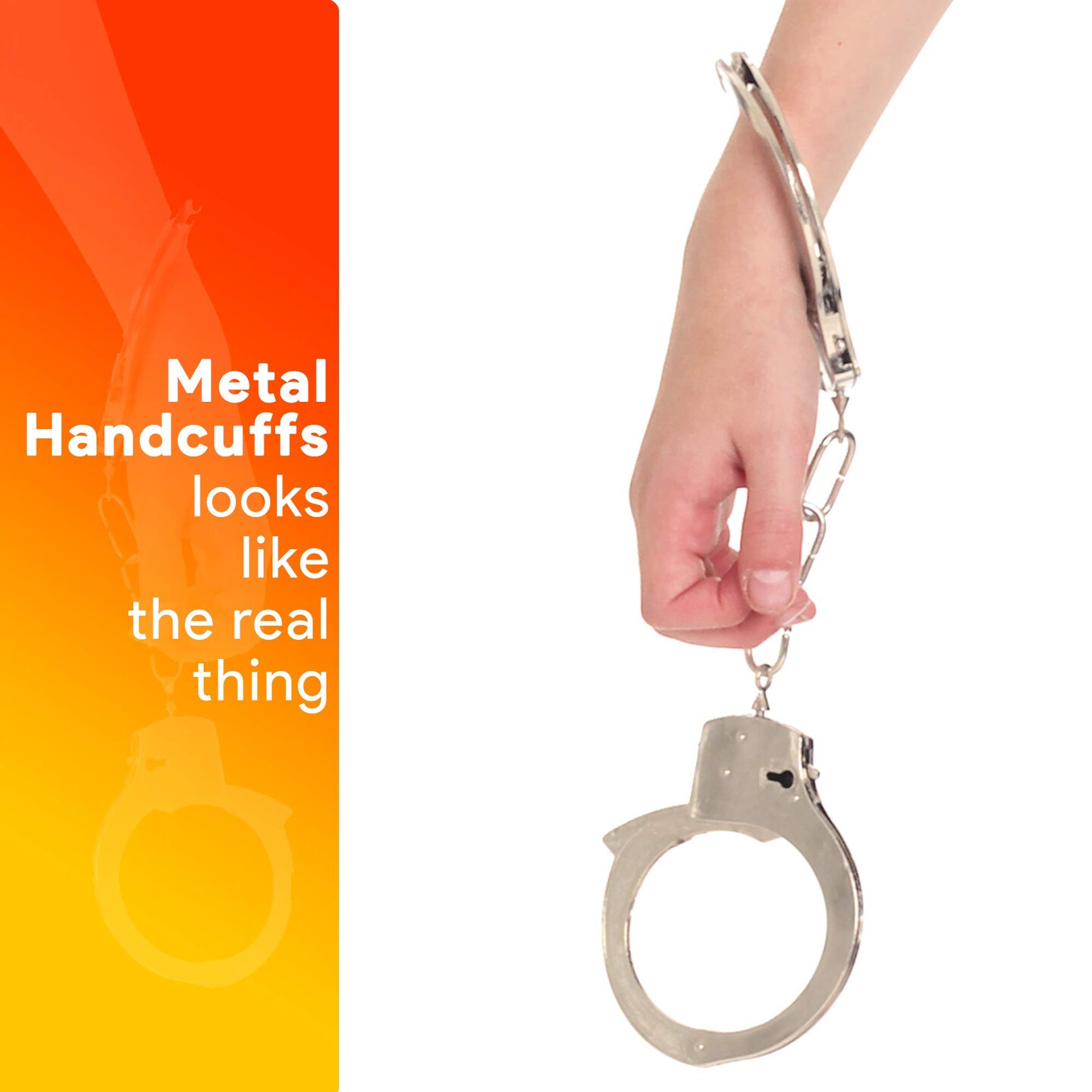 Metal Handcuffs with Keys - Toy Police Costume Prop Accessories Metal Chain Hand Cuffs with Safety Release and Key Silver