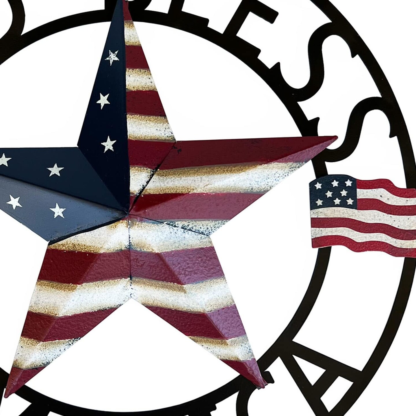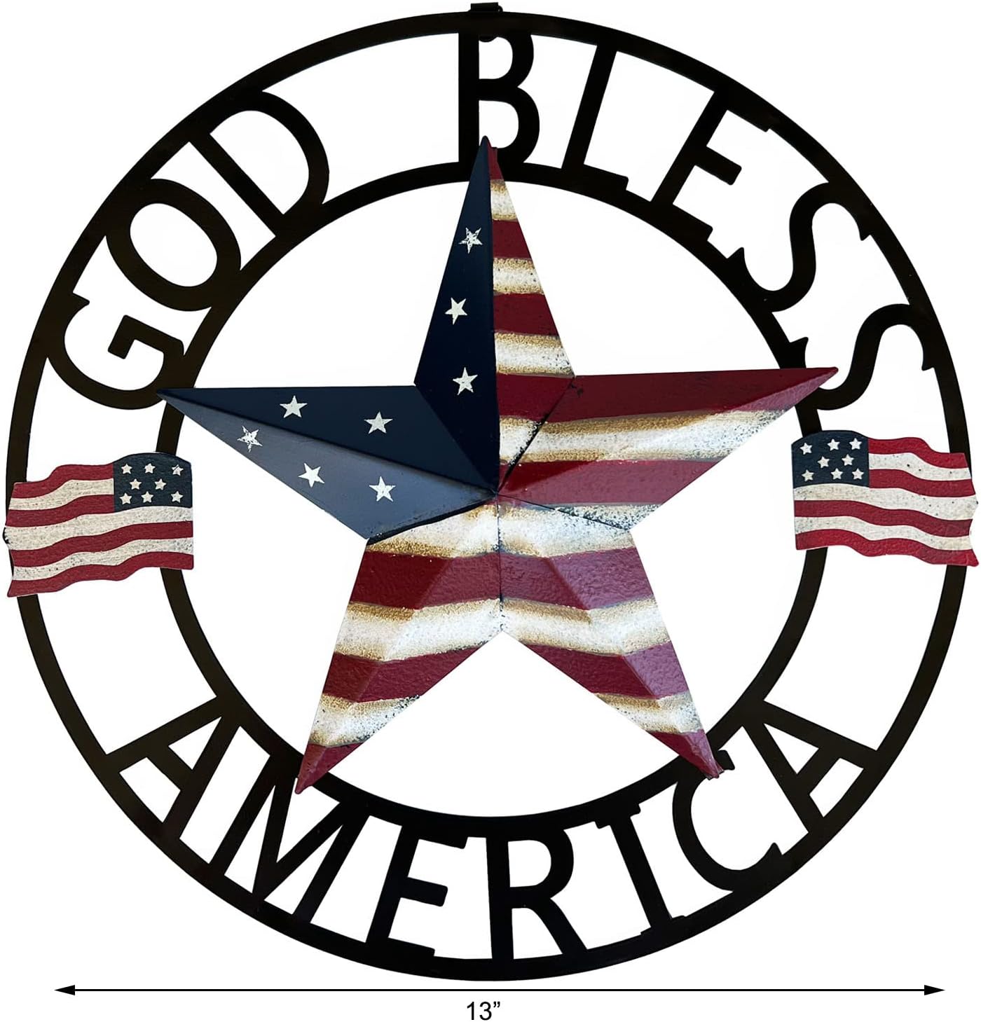 Metal Hanging Rustic Star Welcome Door Wreath,13''x13'',Vintage American Flag