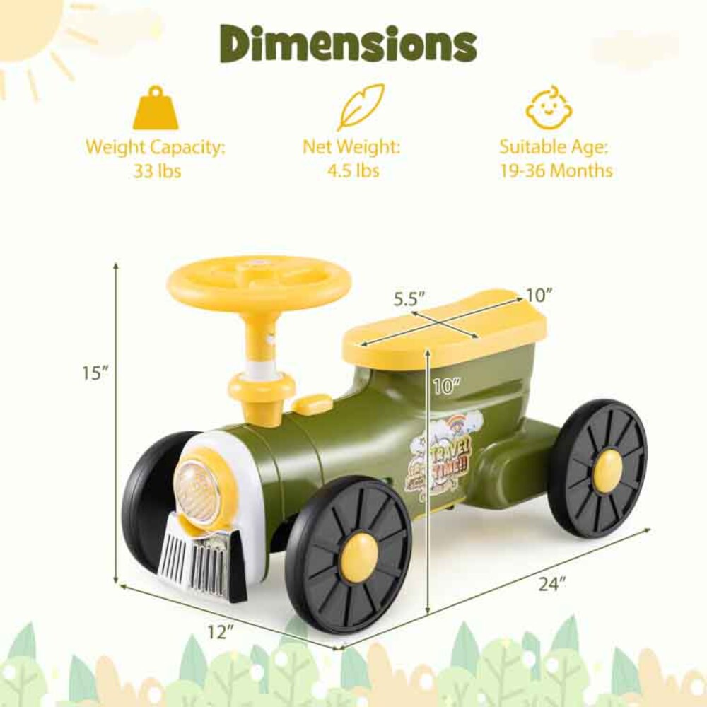 Metal Kids Ride-On Car with Train Whistle and Storage