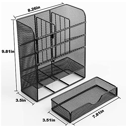 Metal Pen Organizer, Pencil Holder for Desk, Desk Organizer with Drawer for School, Home, Art Supplies (Black)
