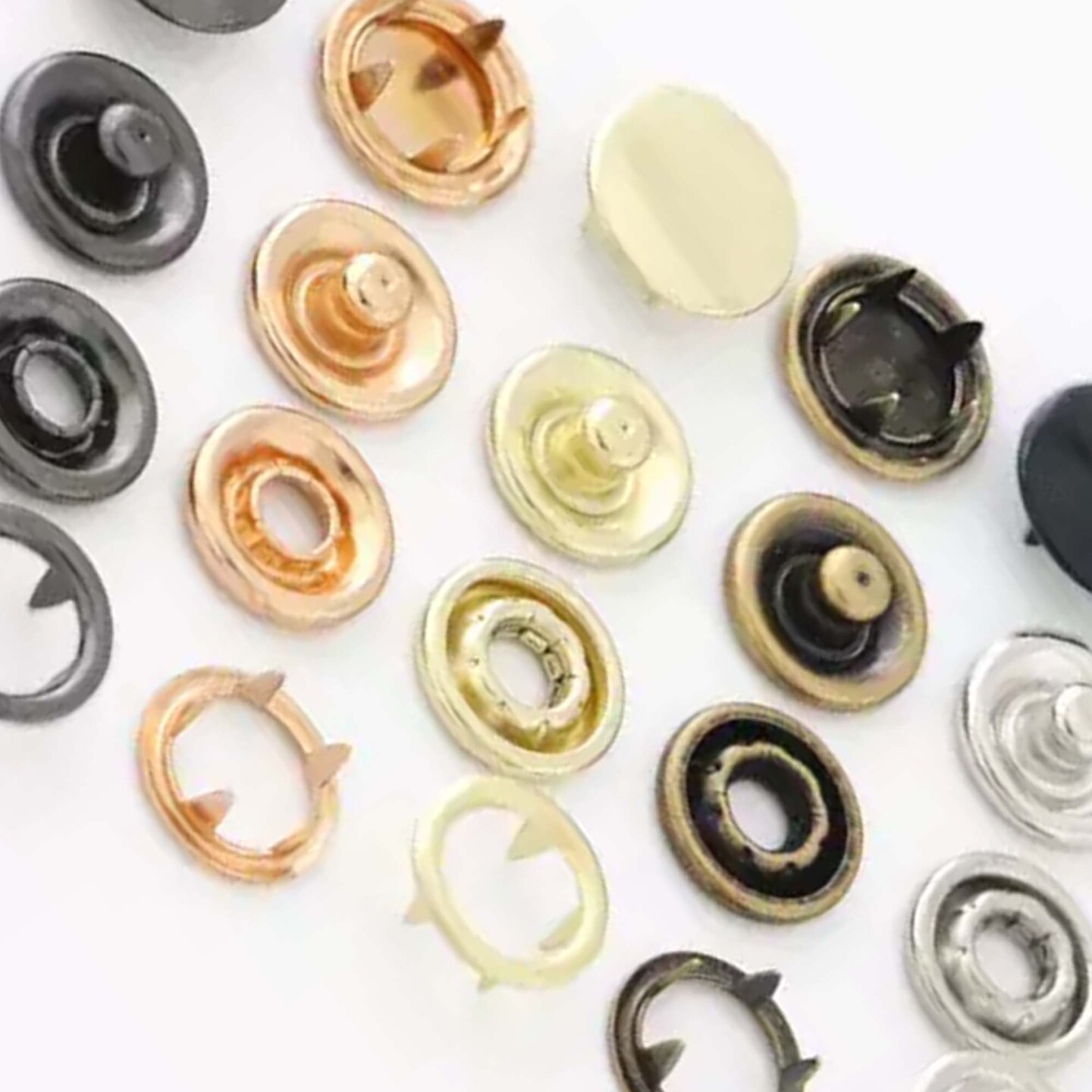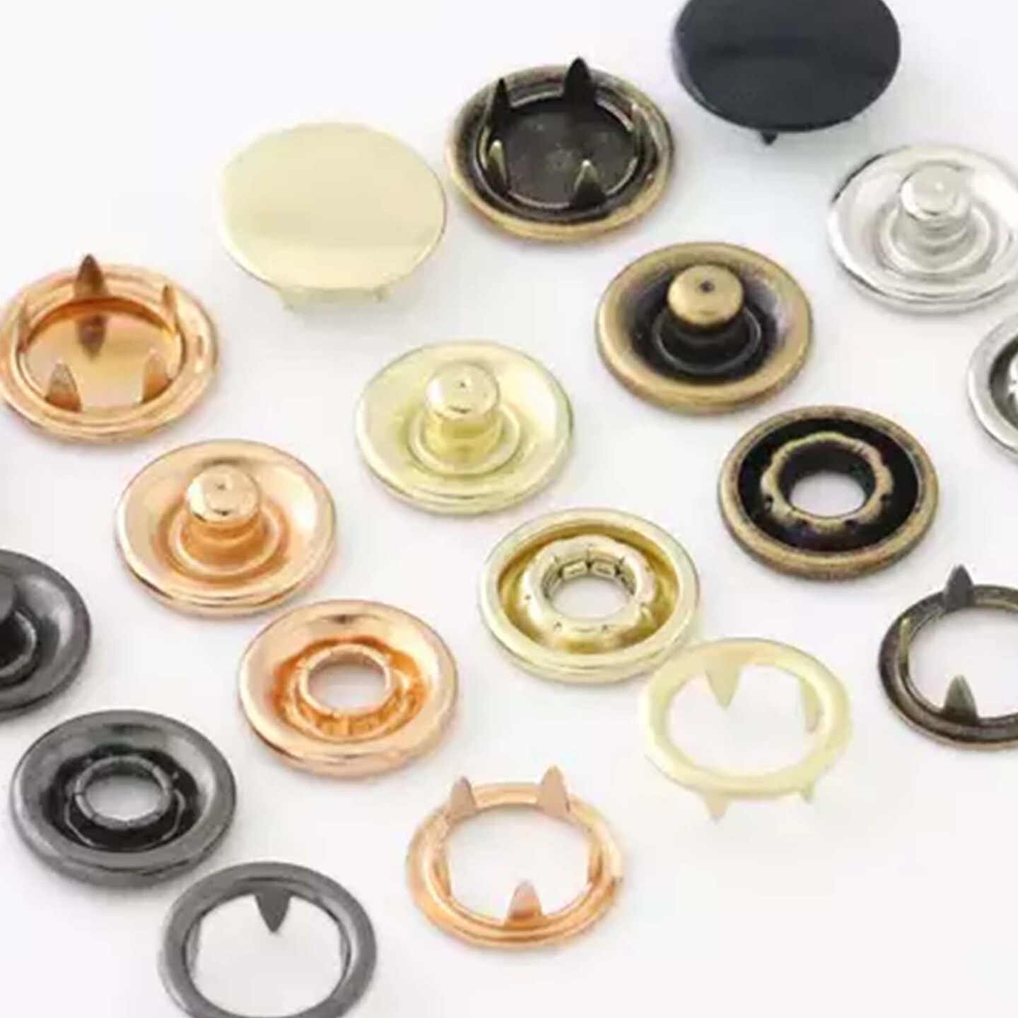 Metal Prong Ring Snaps with Button Cover 4-Part Set Durable Fabric Fasteners