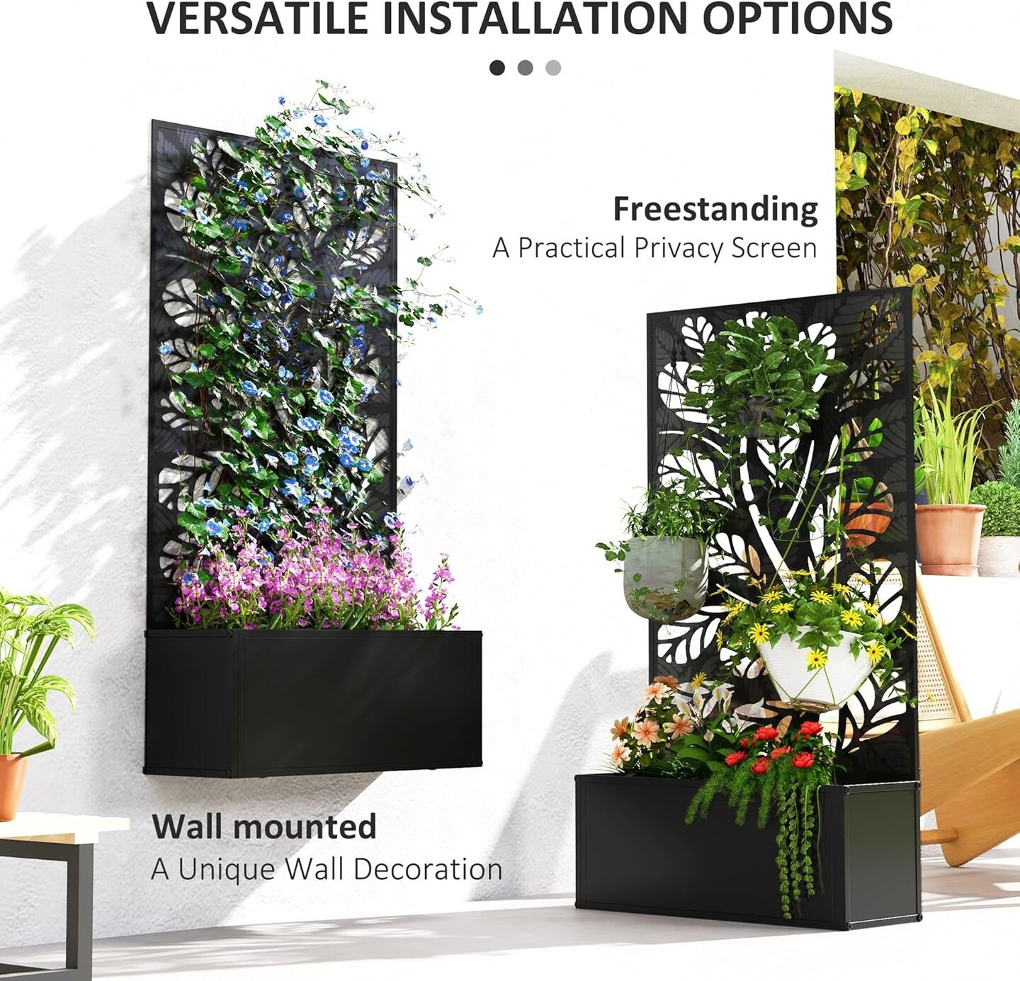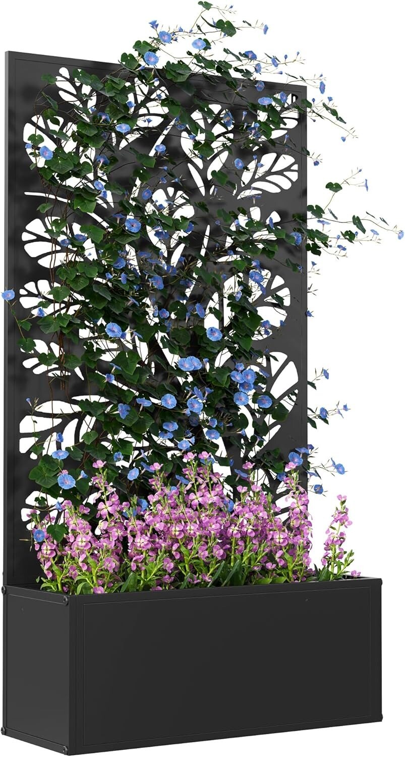 Metal Raised Garden Bed with Trellis & Privacy Panel