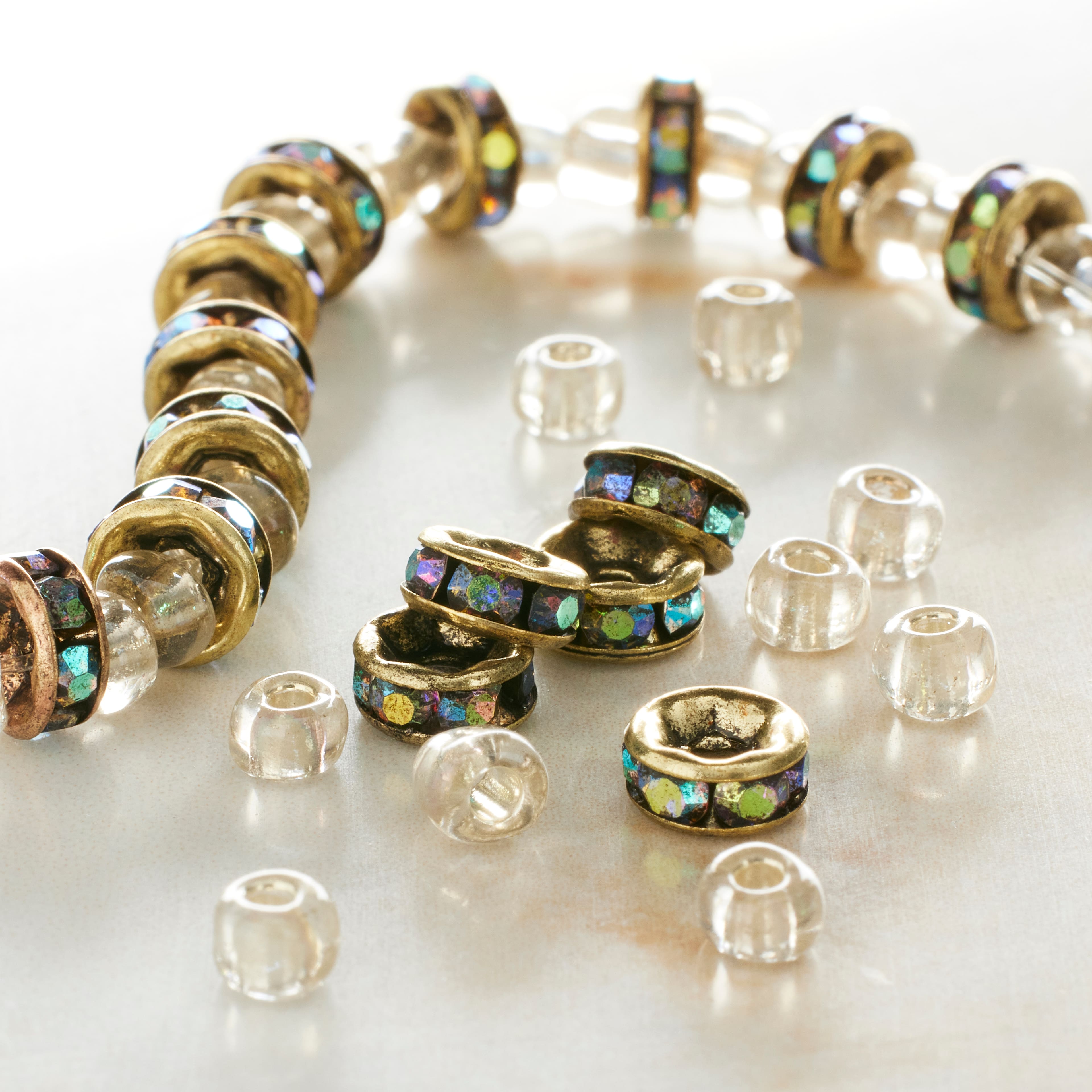 Metal Rhinestone Aurora Borealis Rondelle Beads, 6mm by Bead Landing™
