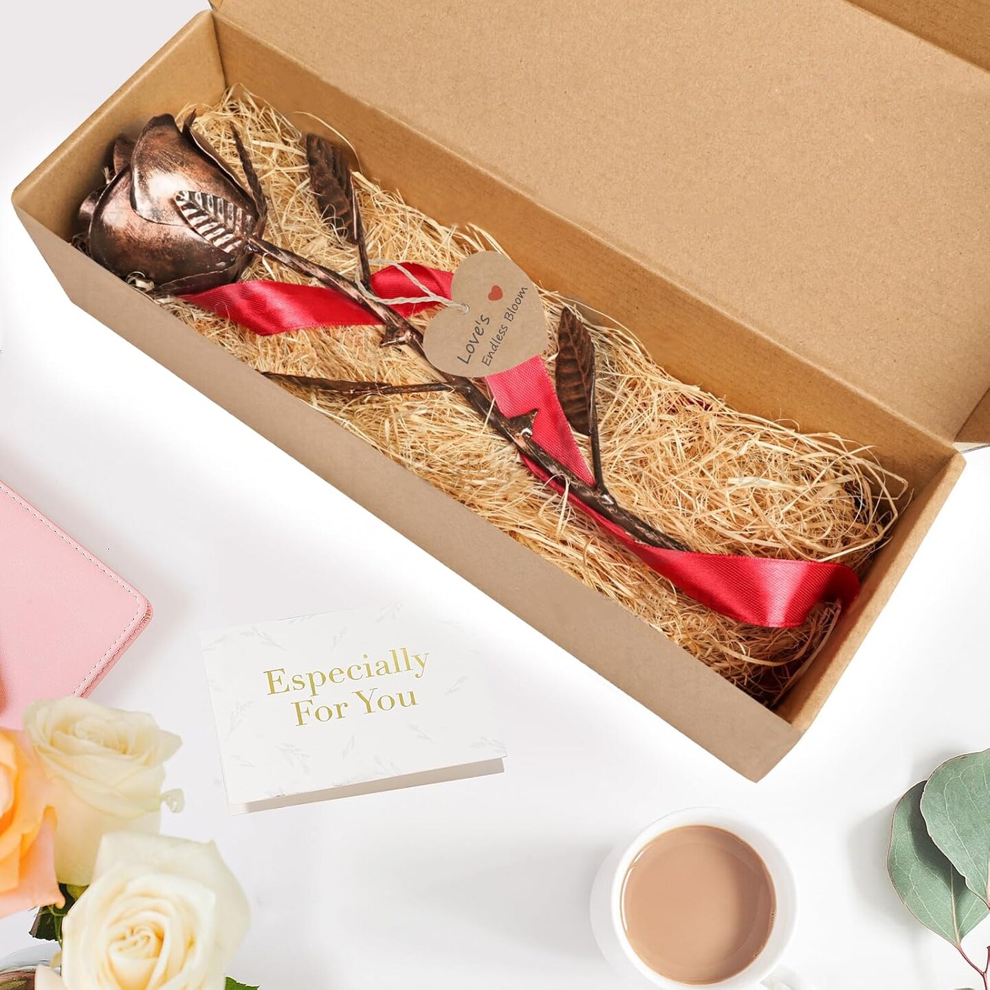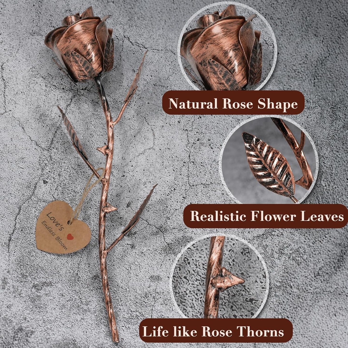 Metal Rose & Bronze Copper Rose Gifts (Copper) 3.5"D x 3.5"W x 11.5"H