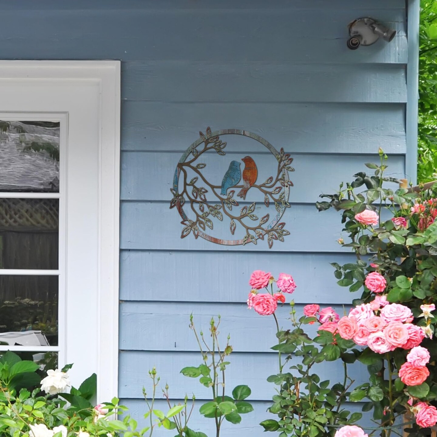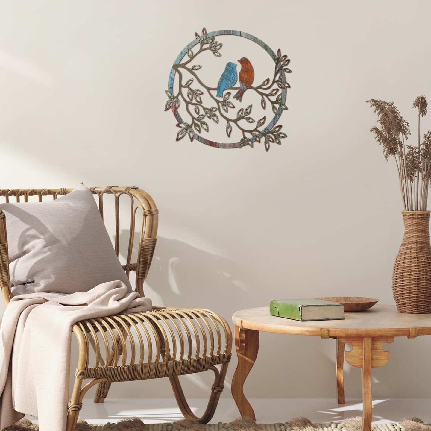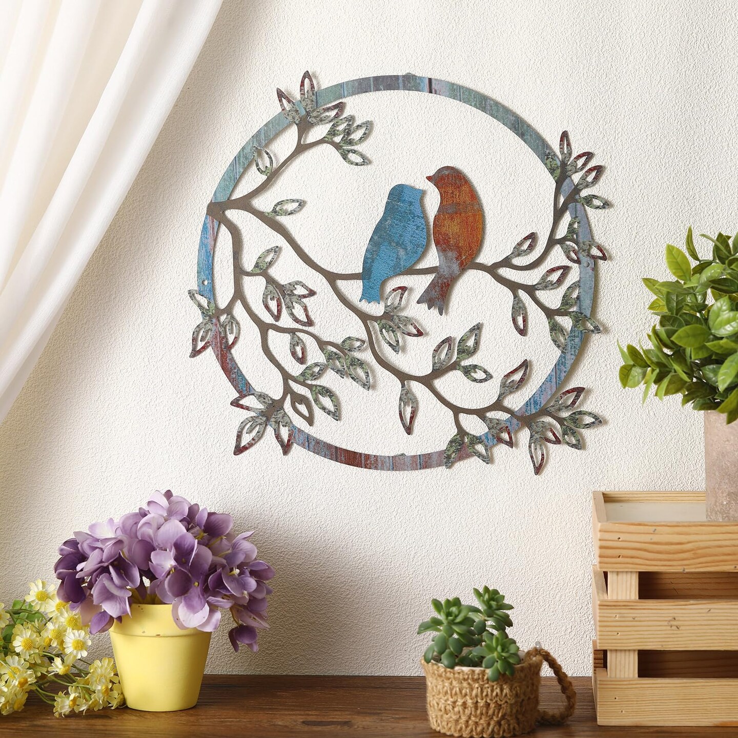Metal Wall Art Bird on Tree Branch Silhouette Bird Art Decor for Living Room Garden Bedroom Office Home Wall Housewarming Party Decor(Retro Color)