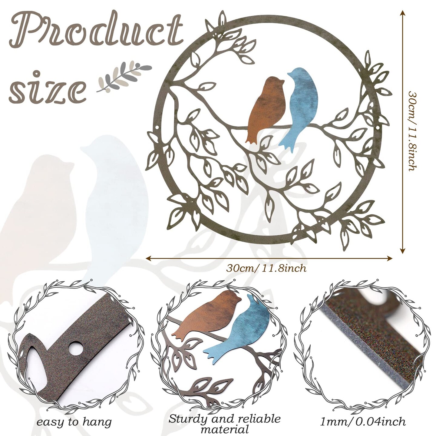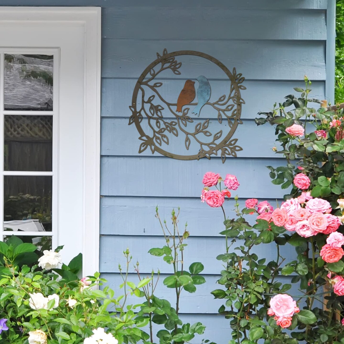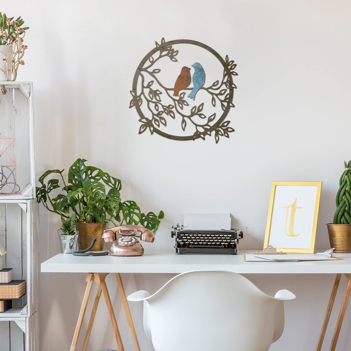 Metal Wall Art Bird on Tree Branch Silhouette Bird Art Decor for Living Room Garden Bedroom Office Home Wall Housewarming Party Decor(Vivid Color)