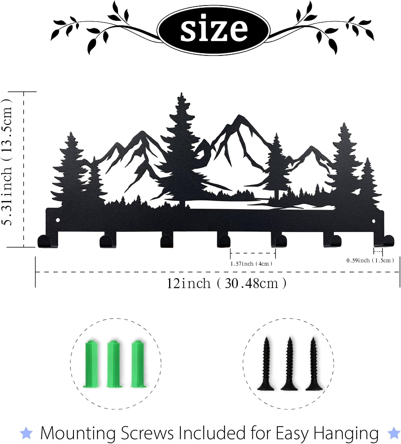 Metal Wall Key Holder – 7-Hook Key Organizer Rack for Kitchen, Entryway, Hallway, Bedroom, or Doorway, Mountain Design 12"