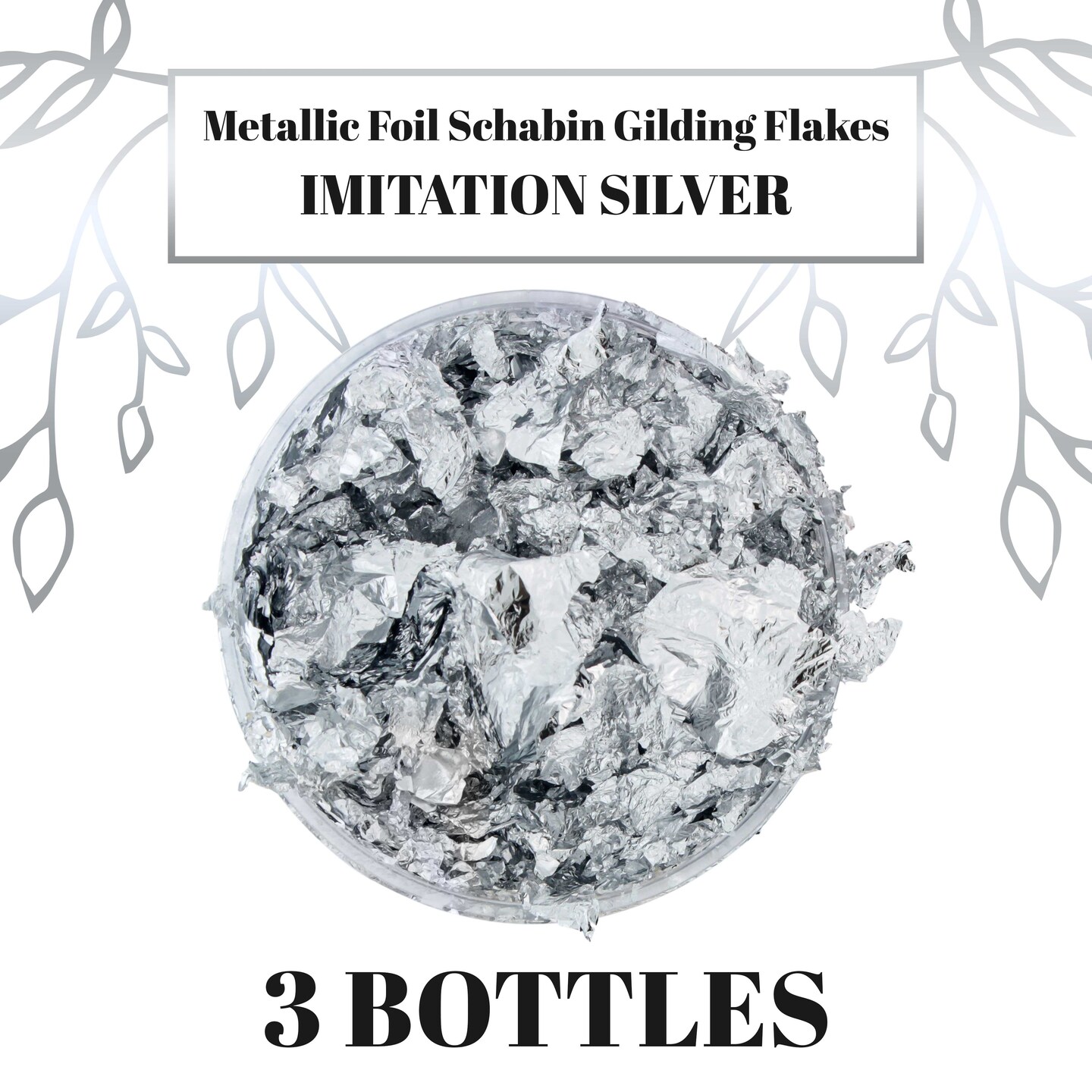 Metallic Foil Schabin Gilding Flakes (3 Pack), Imitation Silver 10 Gram Bottles - Metal Leaf Foil Flakes for Resin, Nails, Crafts, Painting, Jewelry, Slime