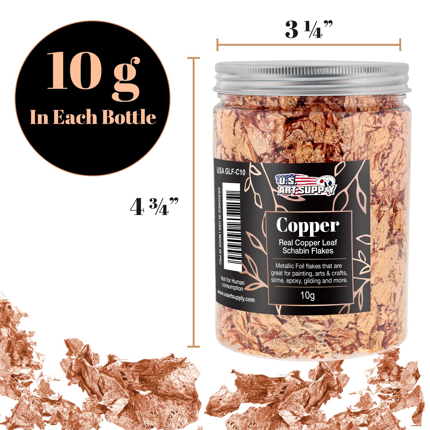Metallic Foil Schabin Gilding Flakes, Imitation Copper 10 Gram Bottle - Metal Leaf Foil Flakes for Resin, Nails, Crafts, Painting, Jewelry, Slime, Arts and Crafts