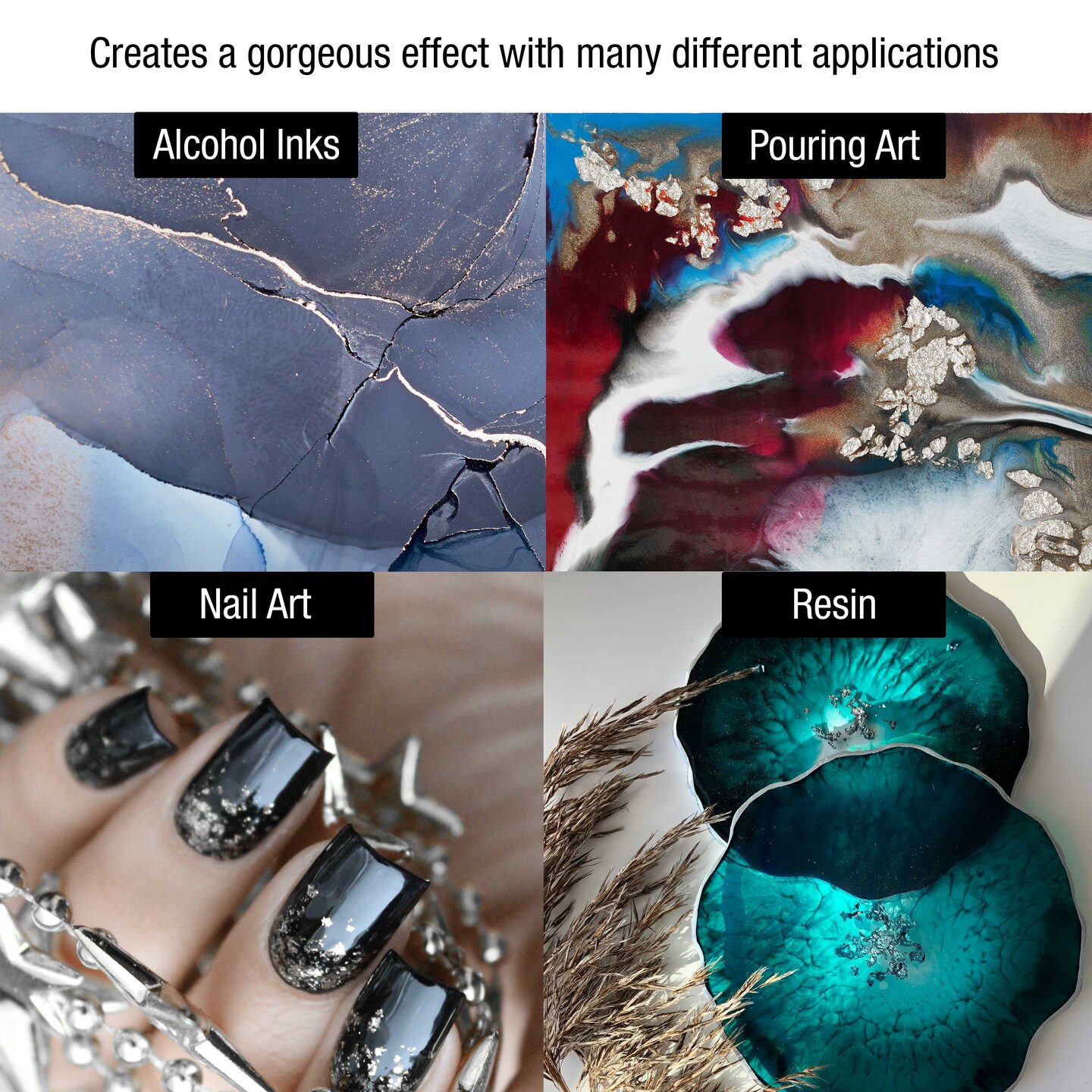 Metallic Foil Schabin Gilding Flakes, Imitation Silver10 Gram Bottle - Metal Leaf Foil Flakes for Resin, Nails, Crafts, Painting, Jewelry, Slime, Arts and Crafts