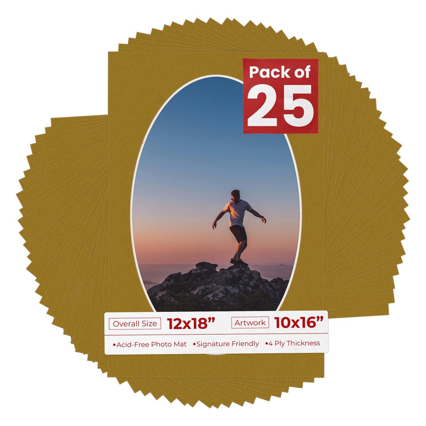 Metallic Gold Mat Board for 12x18 Frames - Oval Opening for 10x16 Photos