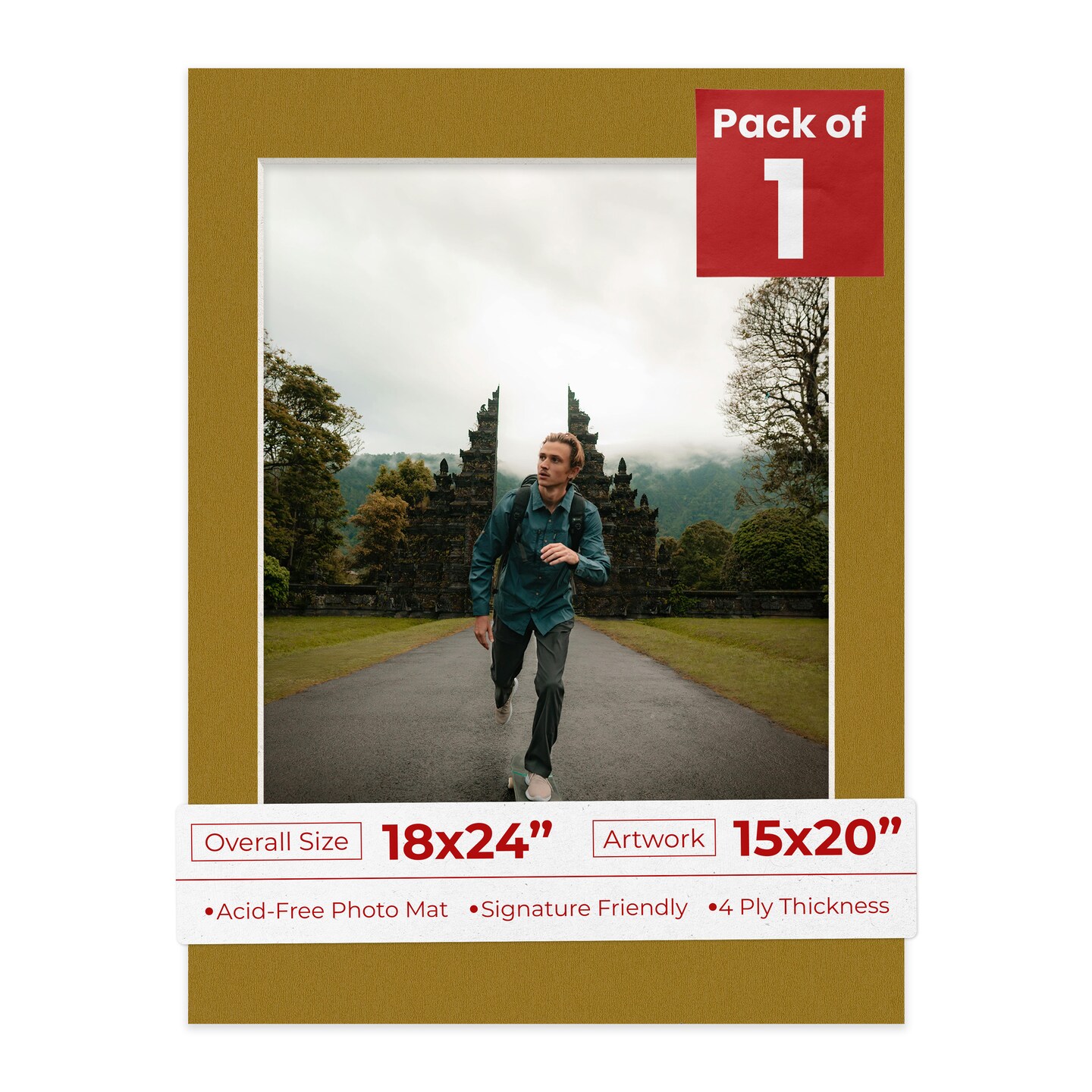 Metallic Gold Mat Board for 18x24 Frames - Fits 15x20 Photos