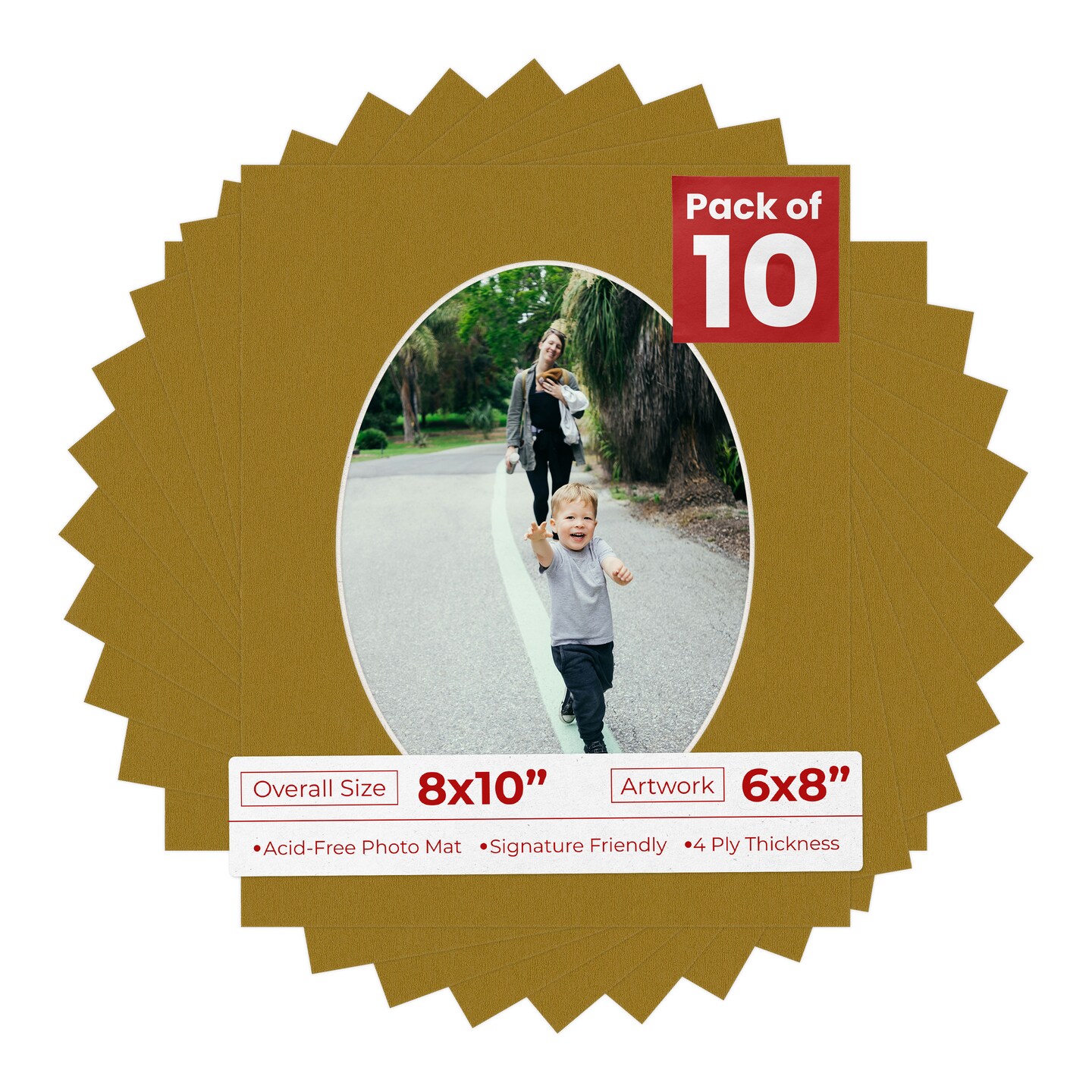 Metallic Gold Mat Board for 8x10 Frames - Oval Opening for 6x8 Photos