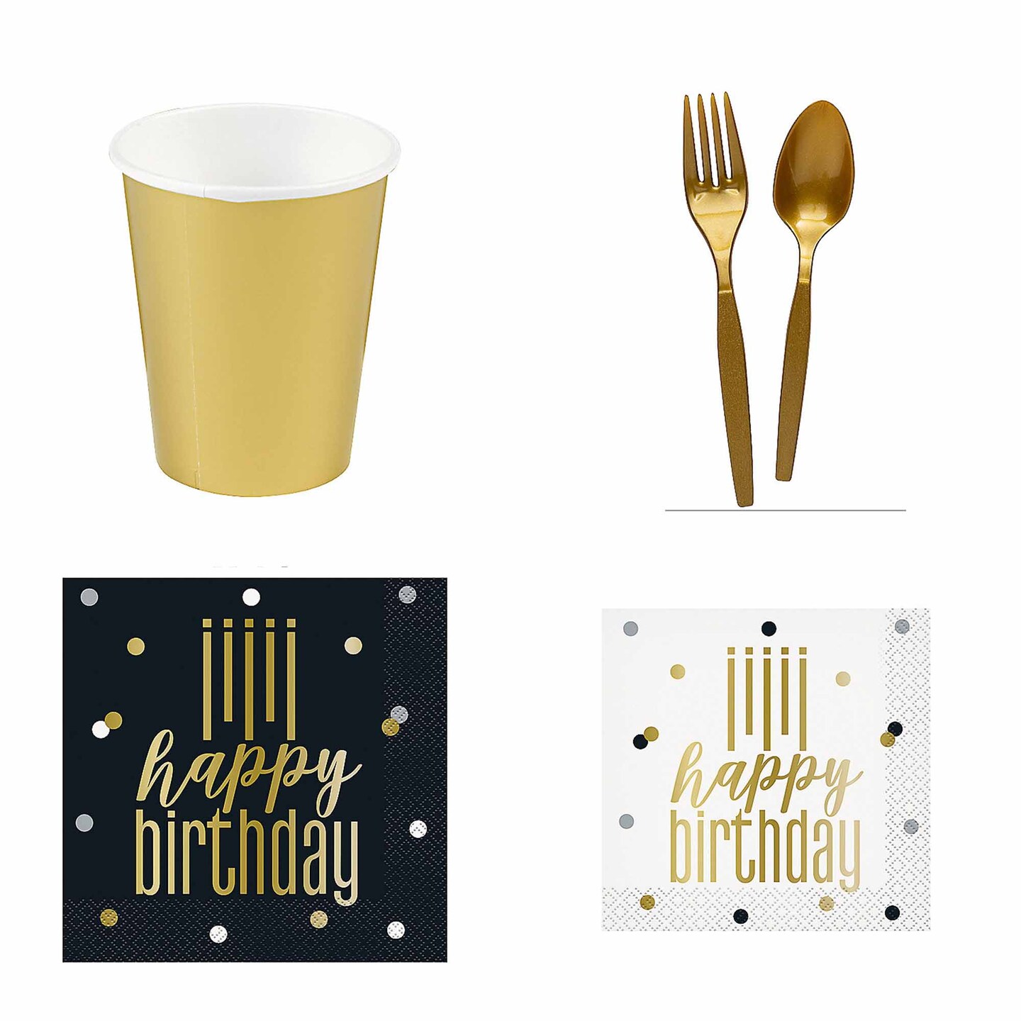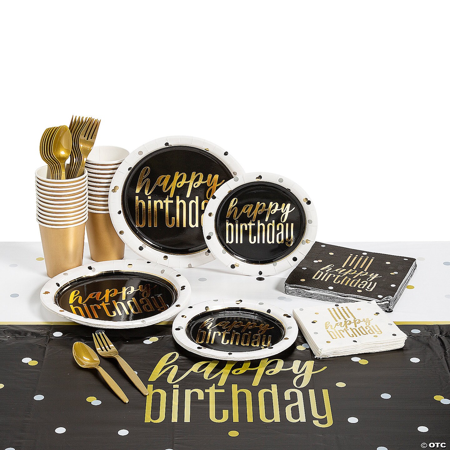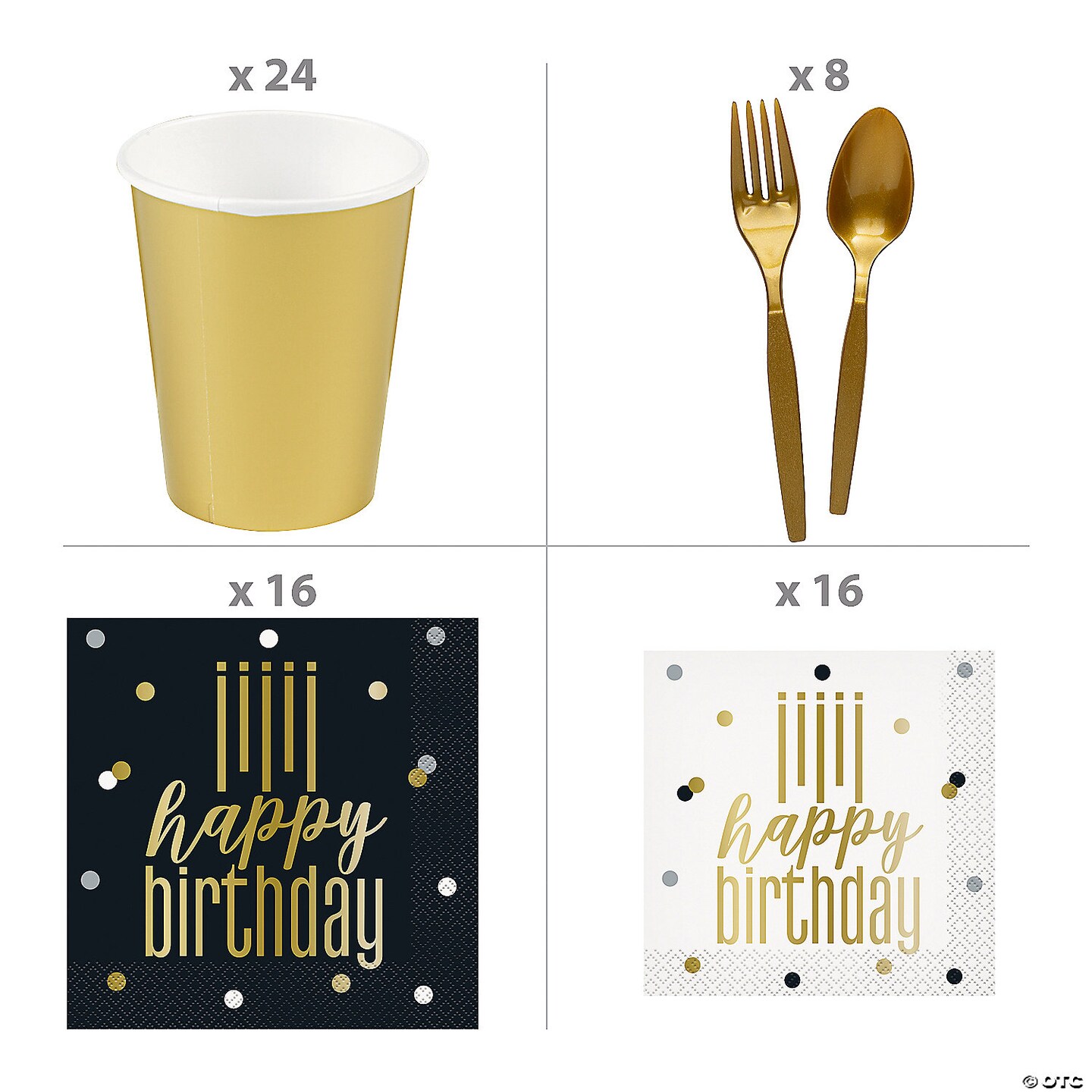 Metallic Happy Birthday Disposable Tableware Kit for 8 Guests 89 Pc