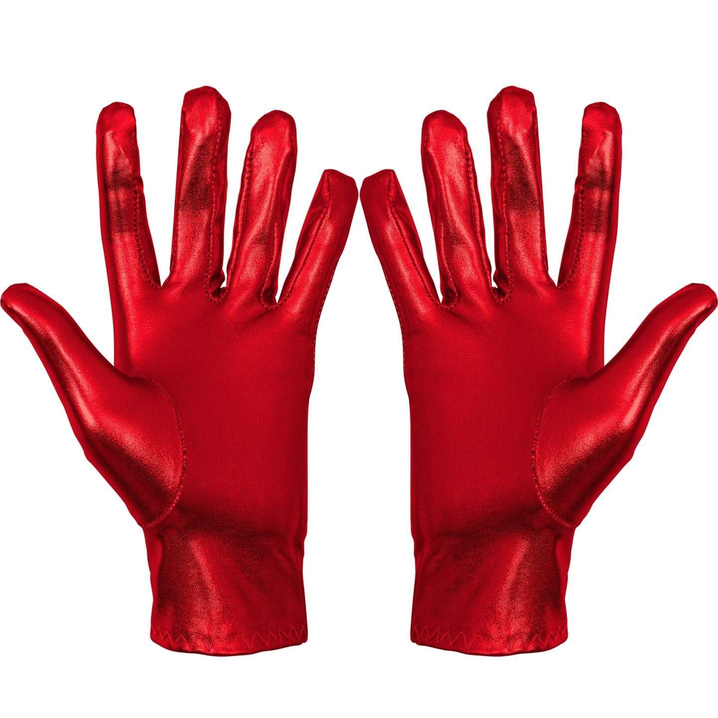 Metallic Red Costume Gloves - Shiny Red Superhero Evening Stretch Dress Glove Set for Men, Women and Kids