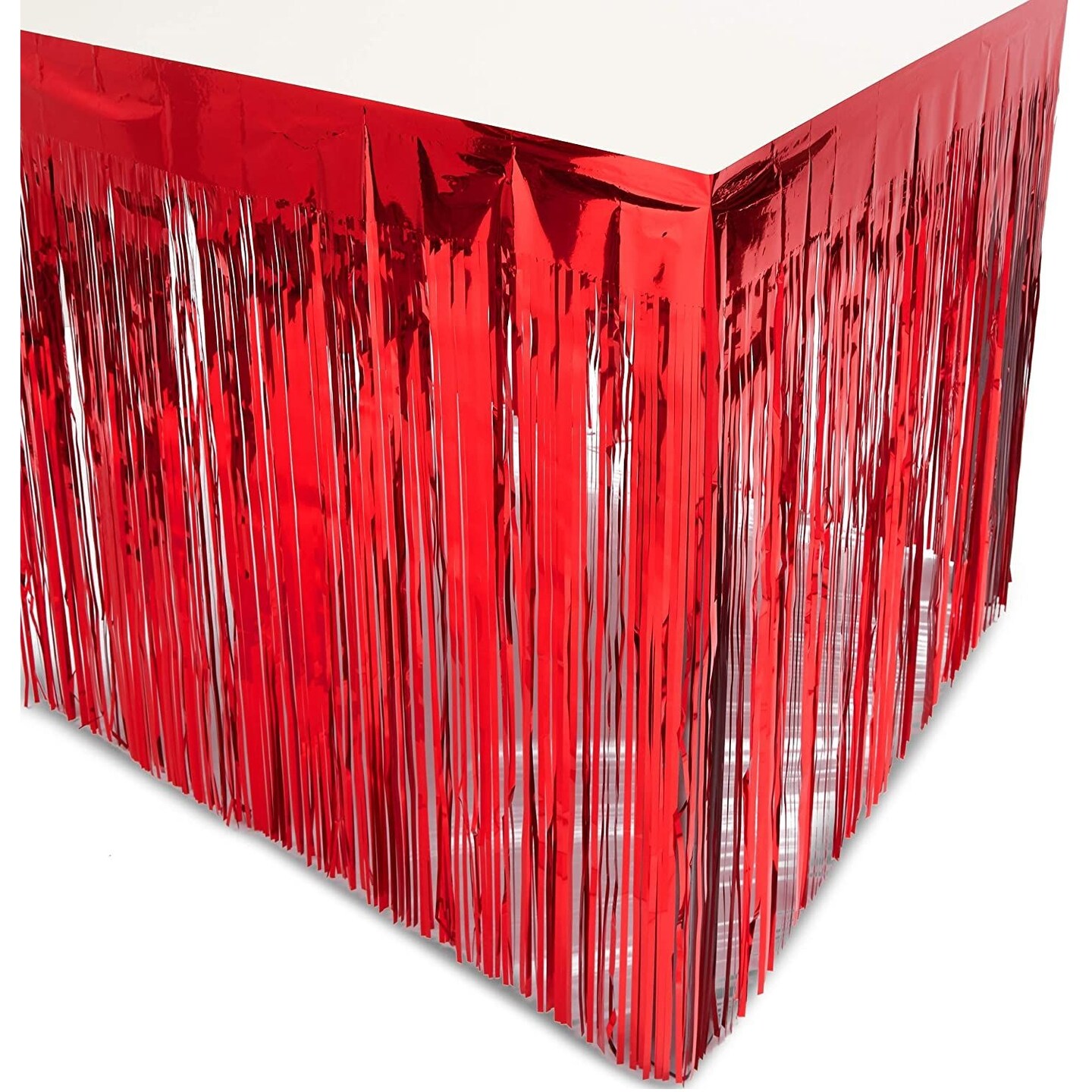 Metallic Red Foil Fringe Table Skirt (3 Pack)
