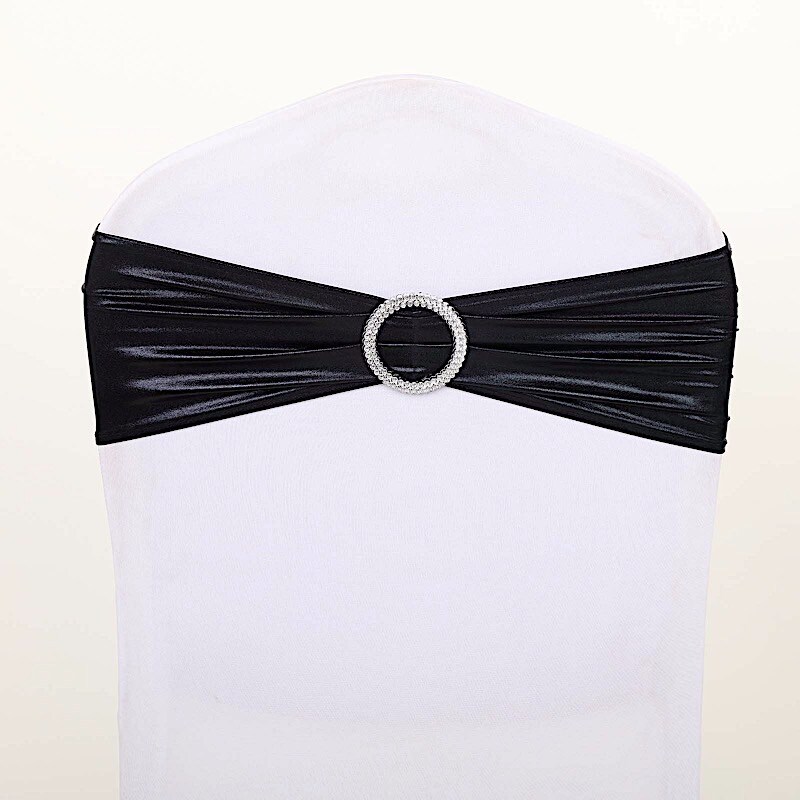 Metallic Spandex Chair Sashes Silver Round Buckles
