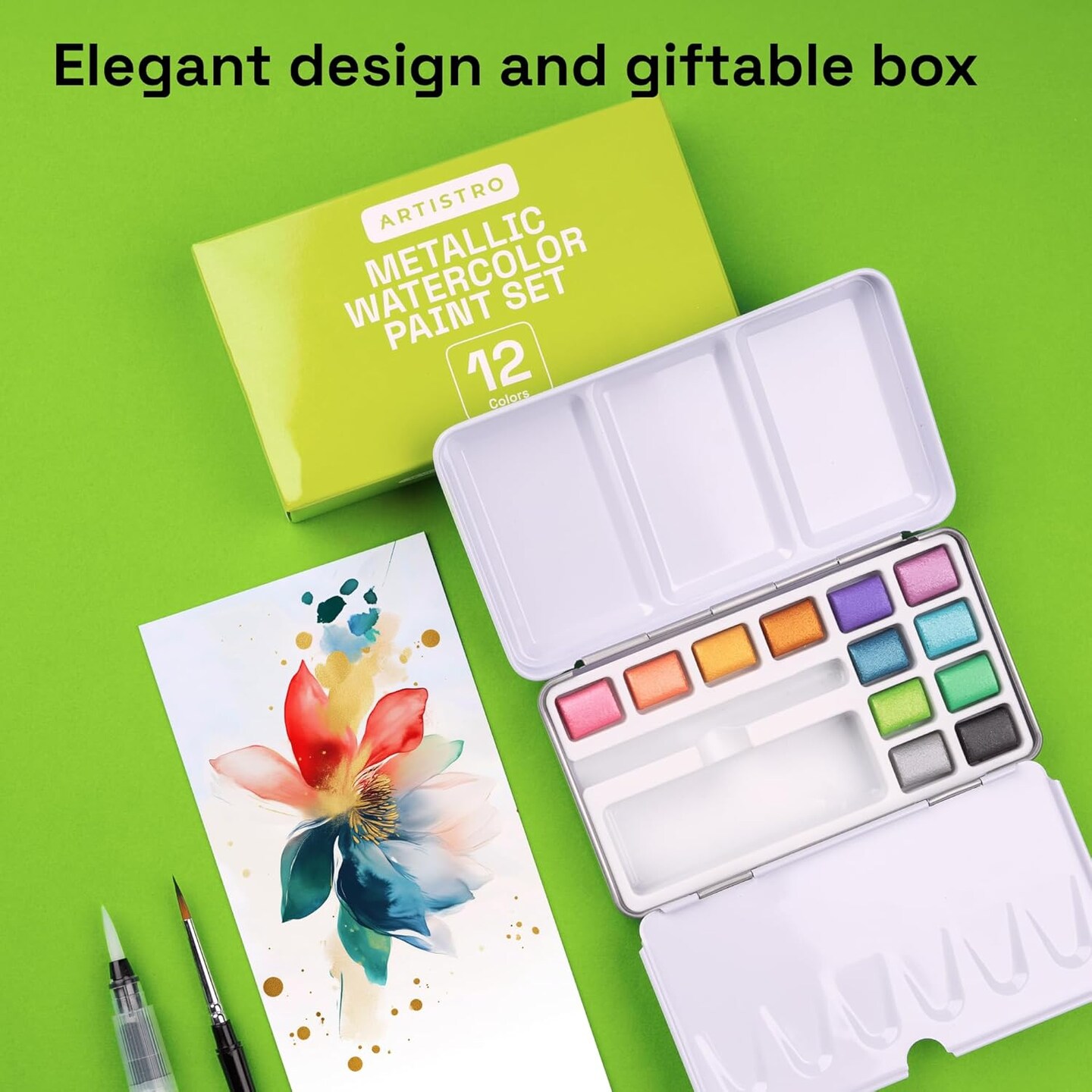 Metallic Watercolor Paint Set 12 Colors, Travel Watercolor Set with Metallic Watercolor Paints, Water Color Paint Sets for Kids, Mini Water Colors Paint Adult Set for Beginners and Amateurs