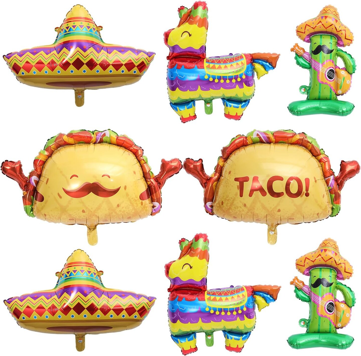 Mexican Fiesta Party Decorations 8Pcs Fiesta Balloons Mexico Taco Llama Cactus Sombrero Mylar Foil Balloons for Cinco De Mayo Taco Carnival Birthday Party Supplies