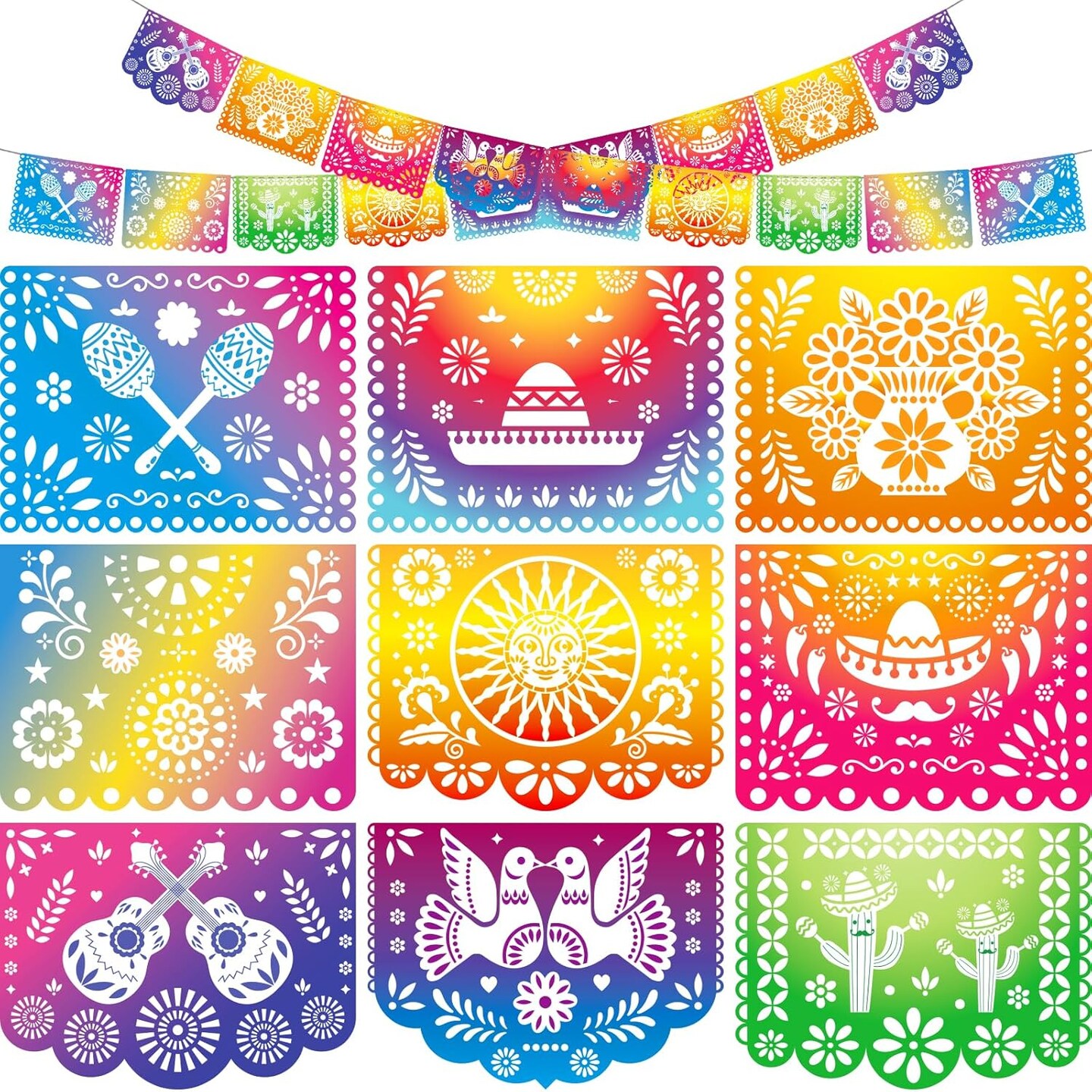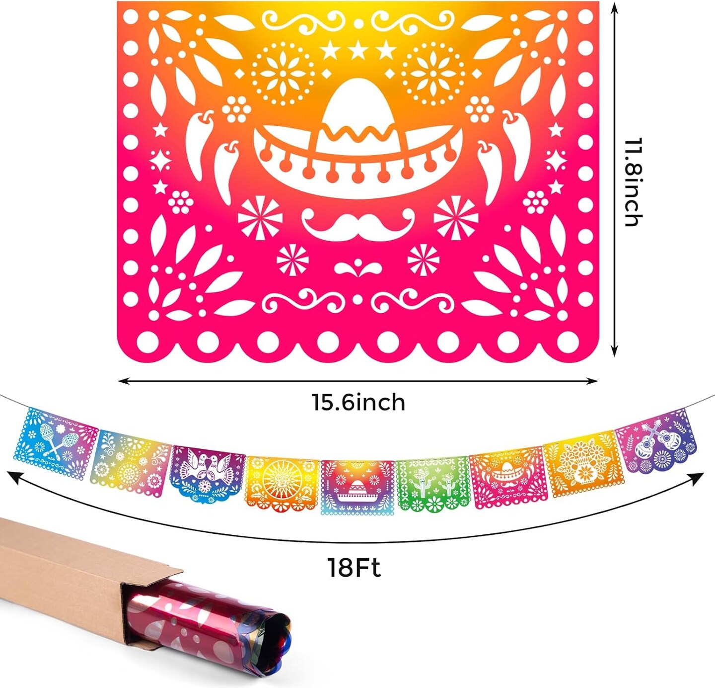 Mexican Party Banners, 18 Feet Plastic Fiesta Papel Picado Cinco de Mayo Dia De Los Muertos Decor Day of the Dead Decorations Mexican Party Supplies