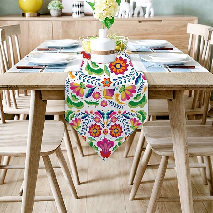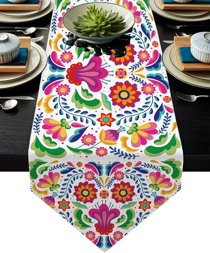 Mexican Table Runners for Fiesta Day of The Dead Dia De Los Muertos Cinco De Mayo Linen Rustic Home Dining Room Kitchen Table Decorations (Mexican 01)