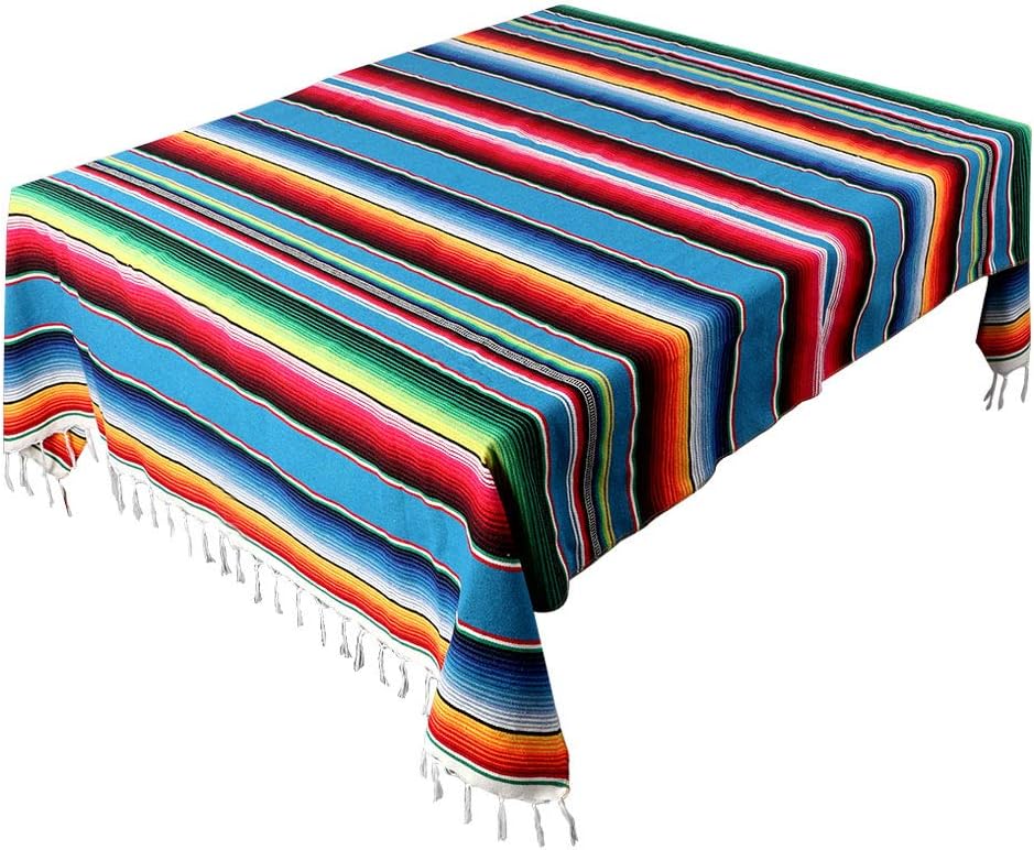 Mexican Tablecloth 60 x 85, Mexican Serape Blanket with Tassels for Fiesta Party Cinco De Mayo Decorations, Rectangle Woven Stripe Tablecloth, Outdoor Picnic Blankets Dining Table Cover