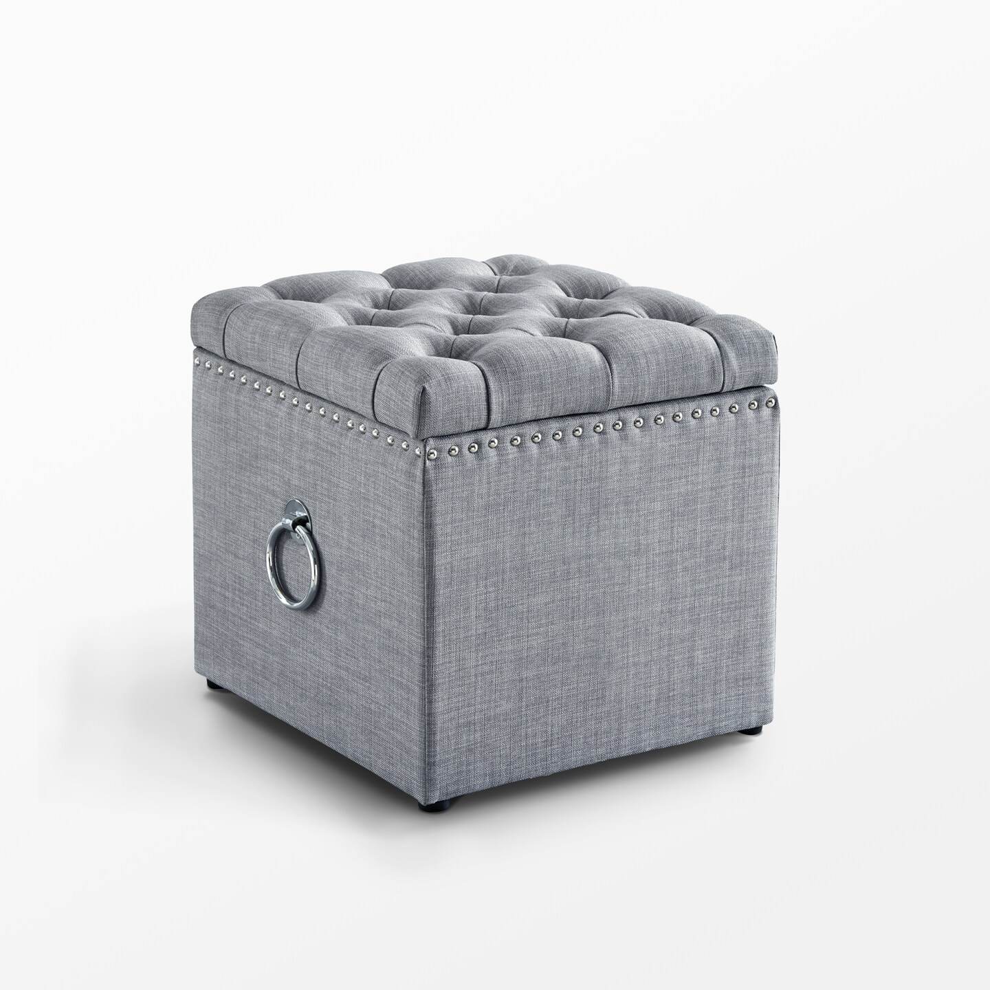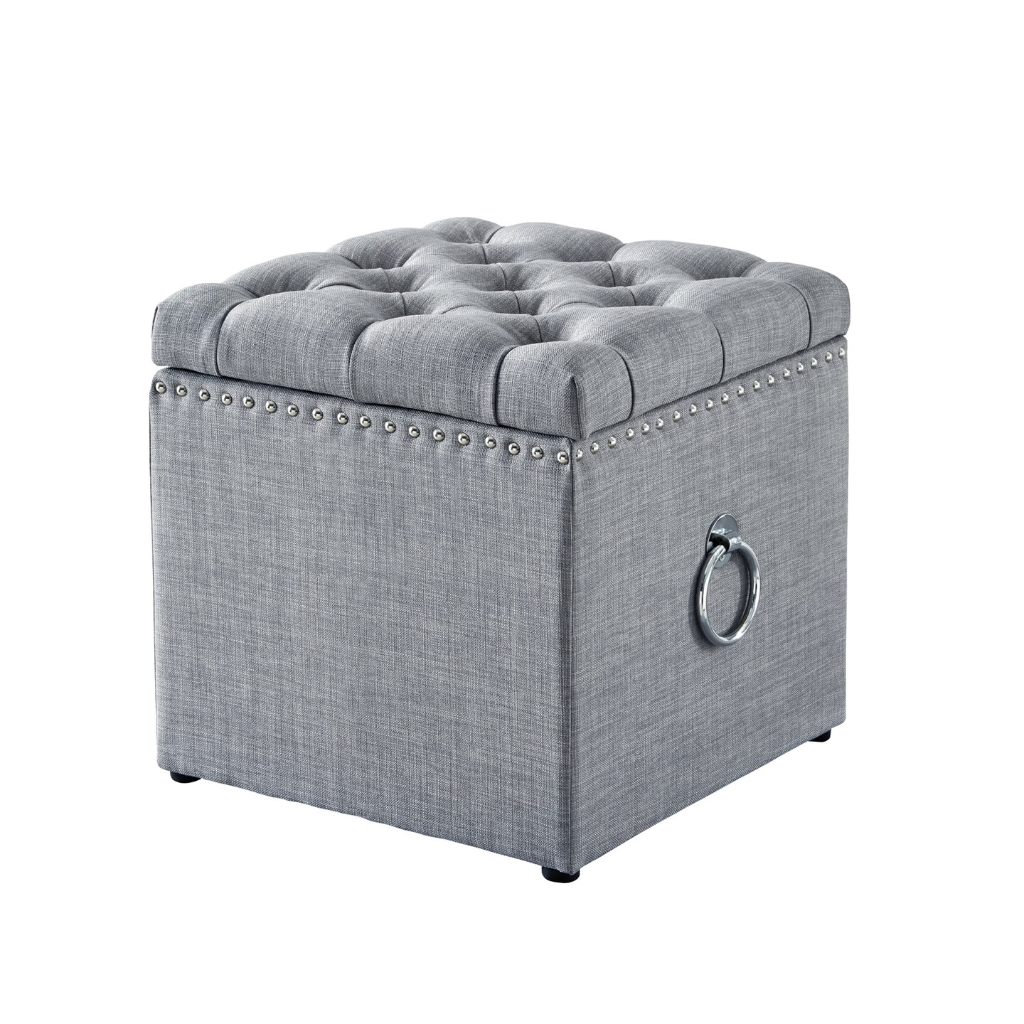 Micella Linen/Velvet Nailhead Trim Cube Storage Ottoman 1 Pc