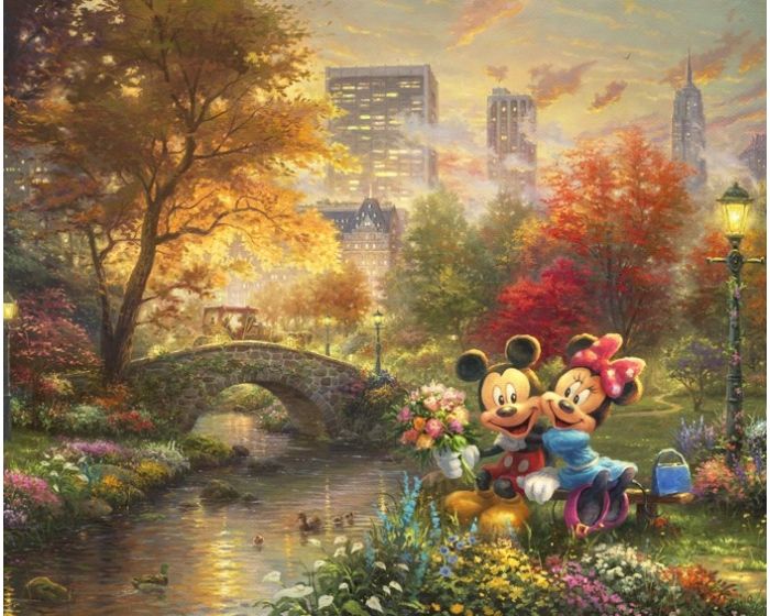 Mickey & Minnie Central Park Disney By Thomas Kinkade Licensed by David Textiles Digital Cotton Print Fabric Panel | 100% Cotton | Sold By the Panel