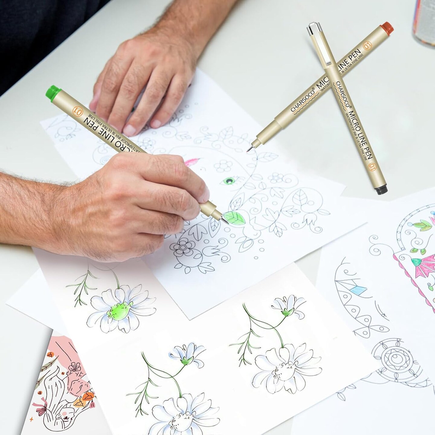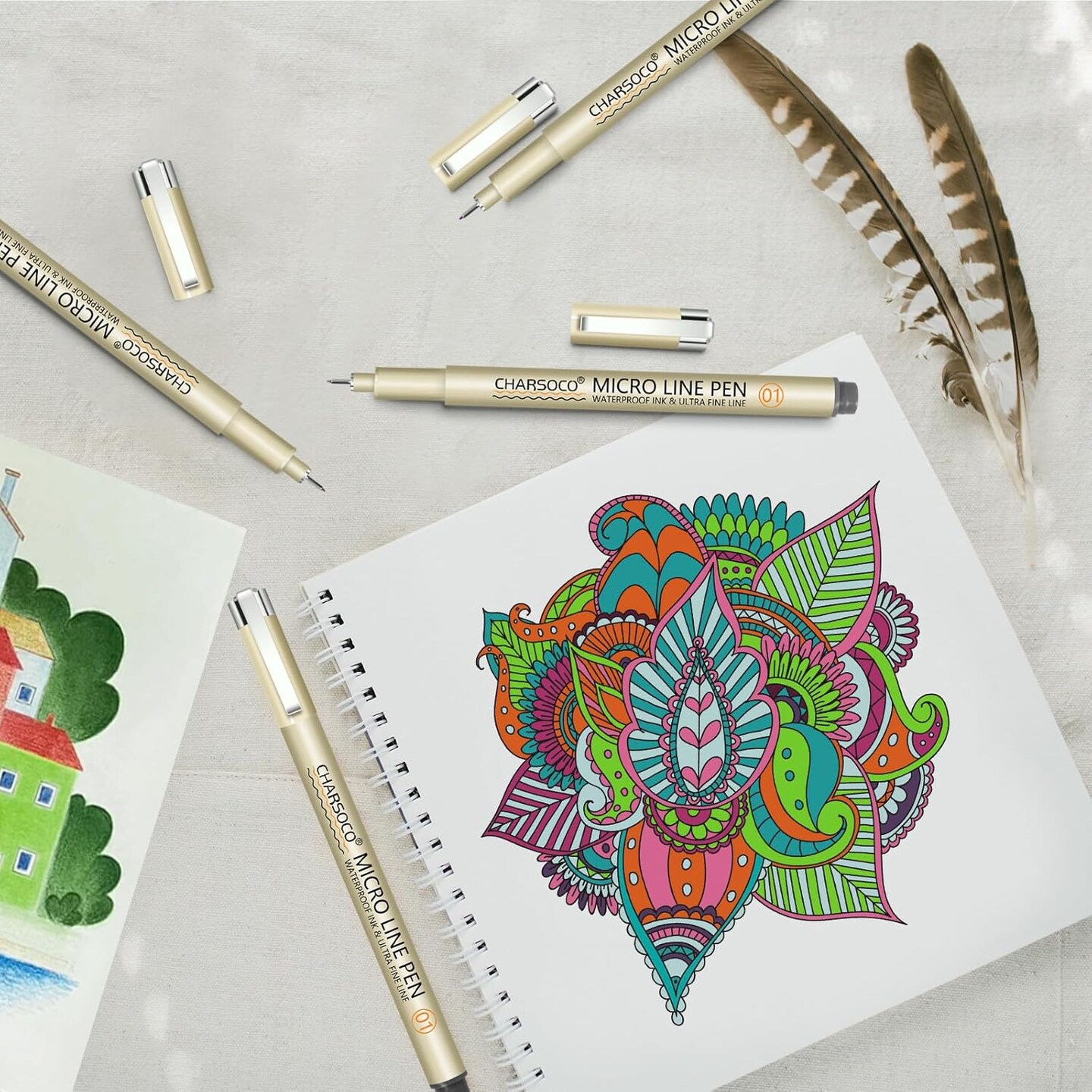 Micro Pen, Fine Point Pen with 6 Colors, Waterproof Archival Ink, 0.25mm Fineliner Ink Pens for Artist Illustration, Sketching, Anime, Manga, Technical Drawing and Scrapbooking