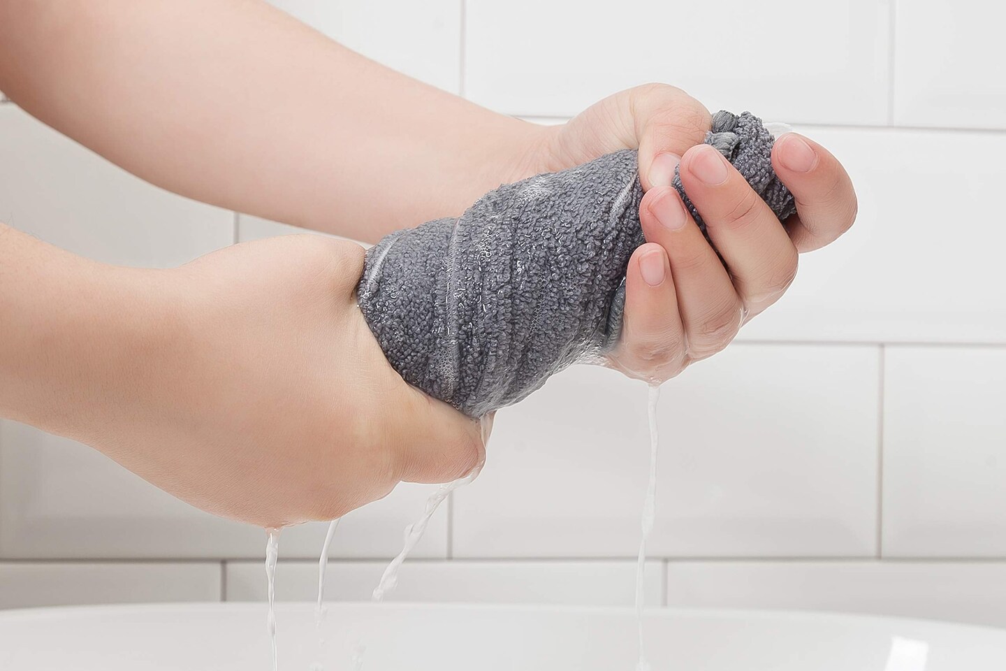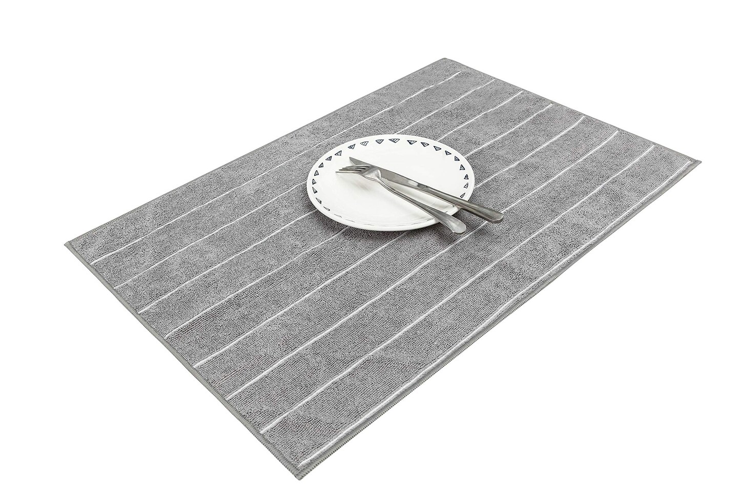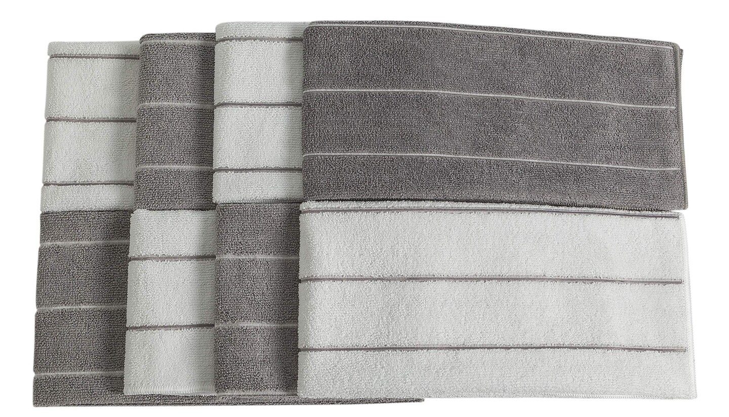 Microfiber Kitchen Towels - Super Absorbent, Soft and Solid Color Dish Towels, 8 Pack (Stripe Designed Grey and White Colors), 26 x 18 Inch