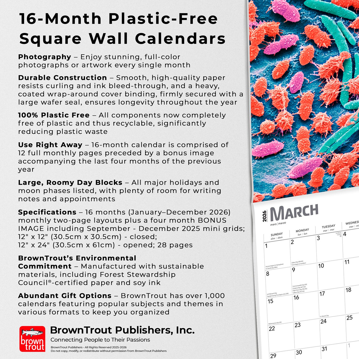 Microscopic World of Innerspace | 2026 12 x 24 Inch (Hanging) Monthly Square Wall Calendar | Plastic-Free